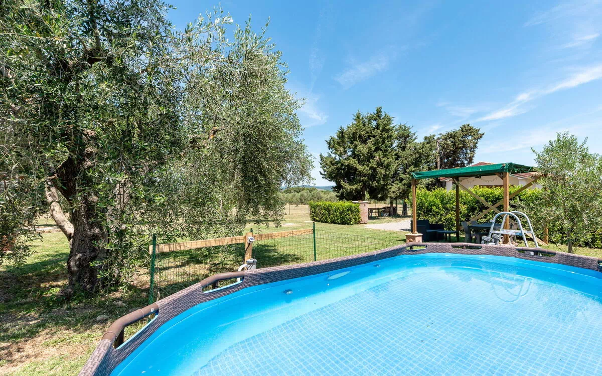 The beautiful and cozy house "Il Mondanespole" in Scarlino, Italy, boasts a two-story design, surrounded by lush meadows and fields. It offers a delightful holiday rental experience with an array of amenities, including a swimming pool, a yard, internet WiFi, and parking on the premises.