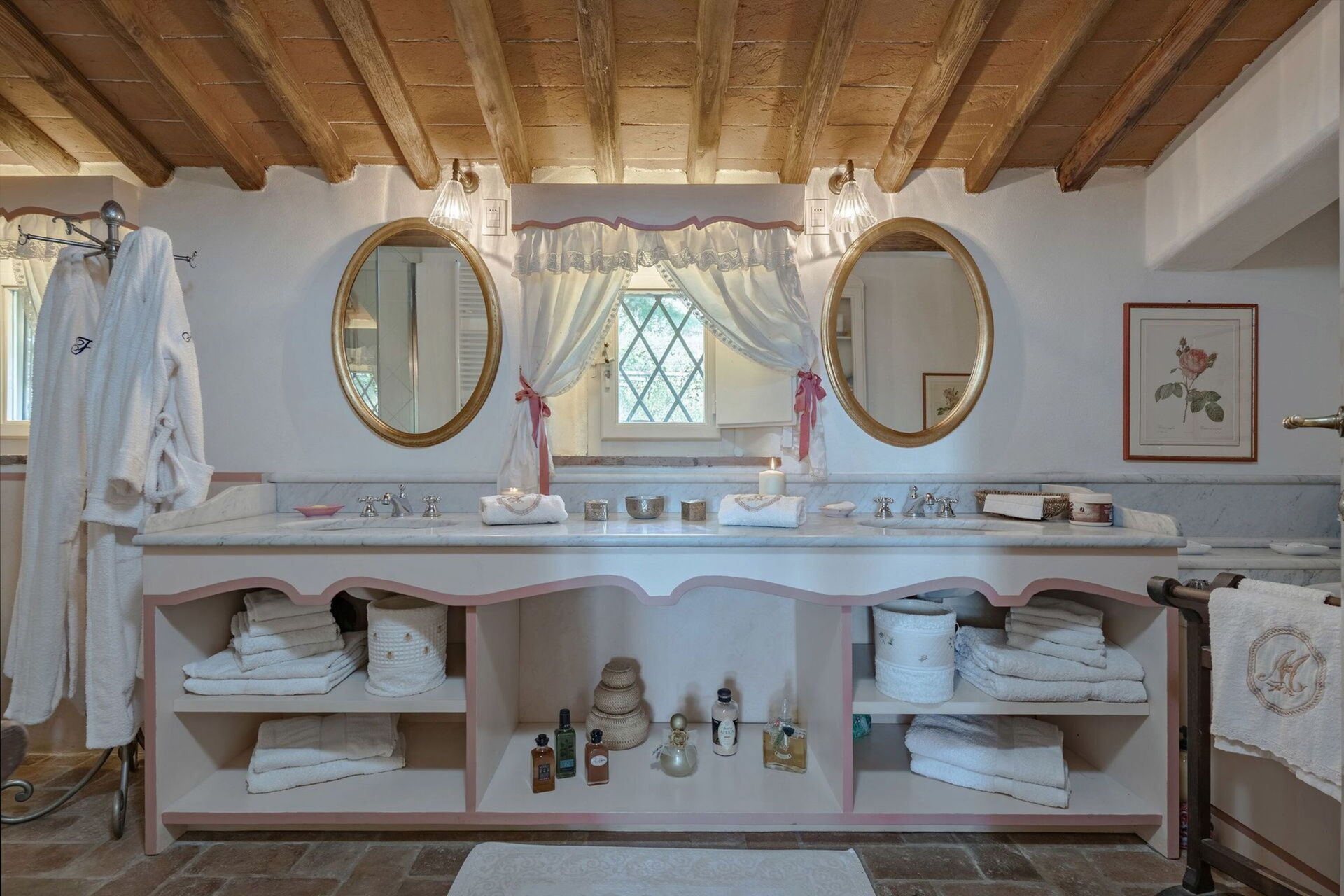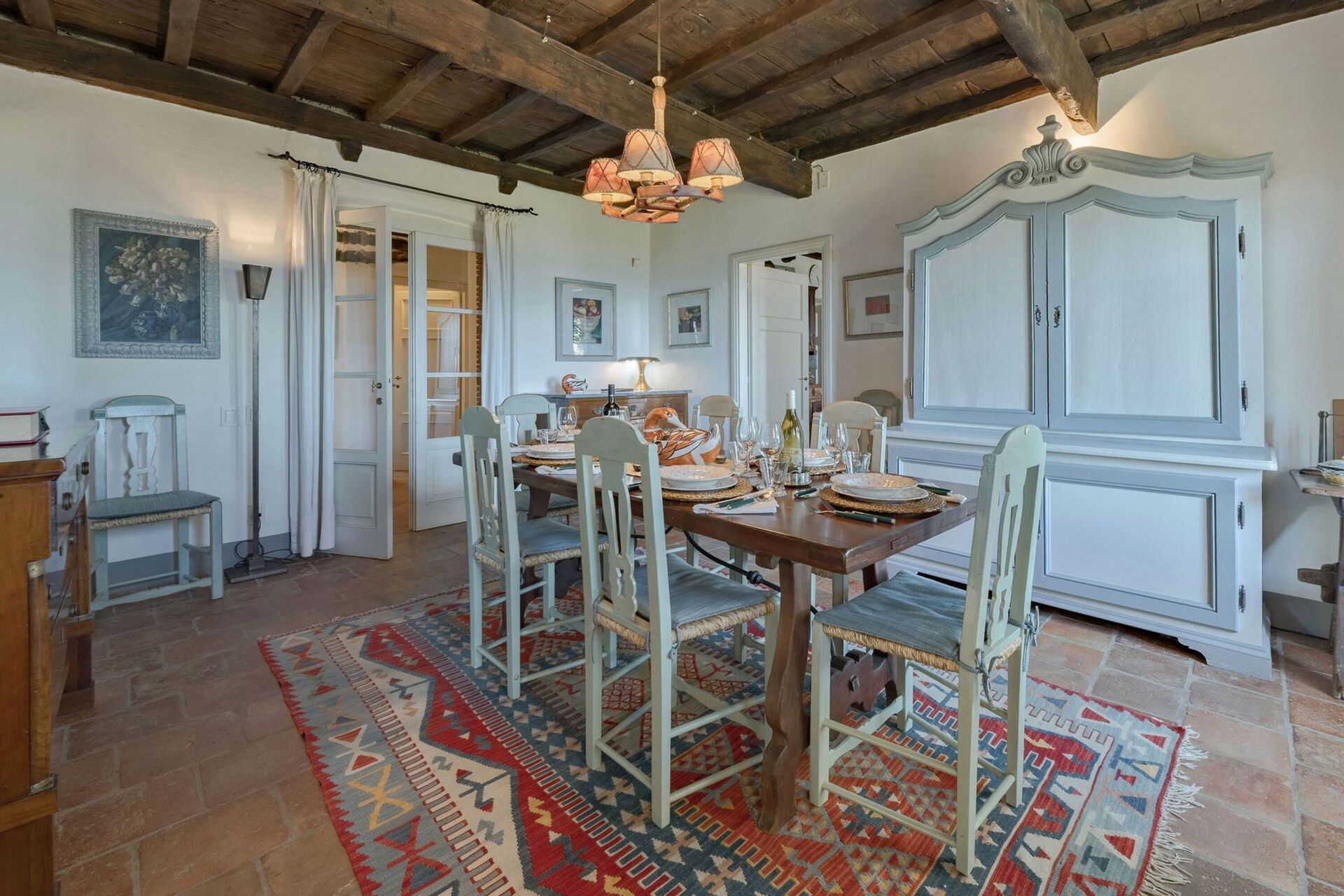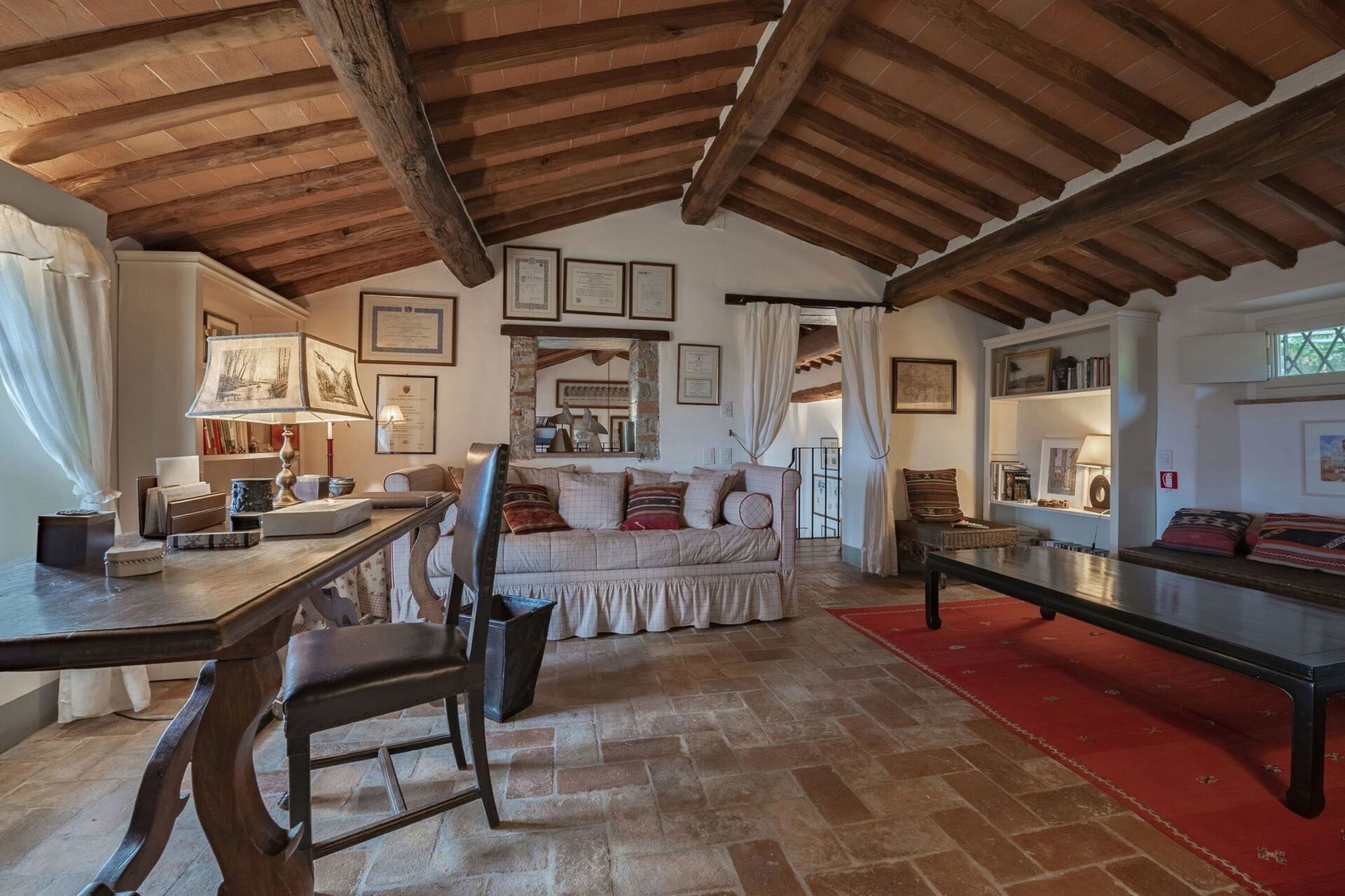 Originally built in the 18th century, the villa has been renovated while maintaining intact the typical characteristics of Tuscan rural buildings (original stone walls, wooden beams and red terracotta floors). Internally the property is furnished in an elegant style creating a clever mix of modern/functional furnishings and antique pieces.