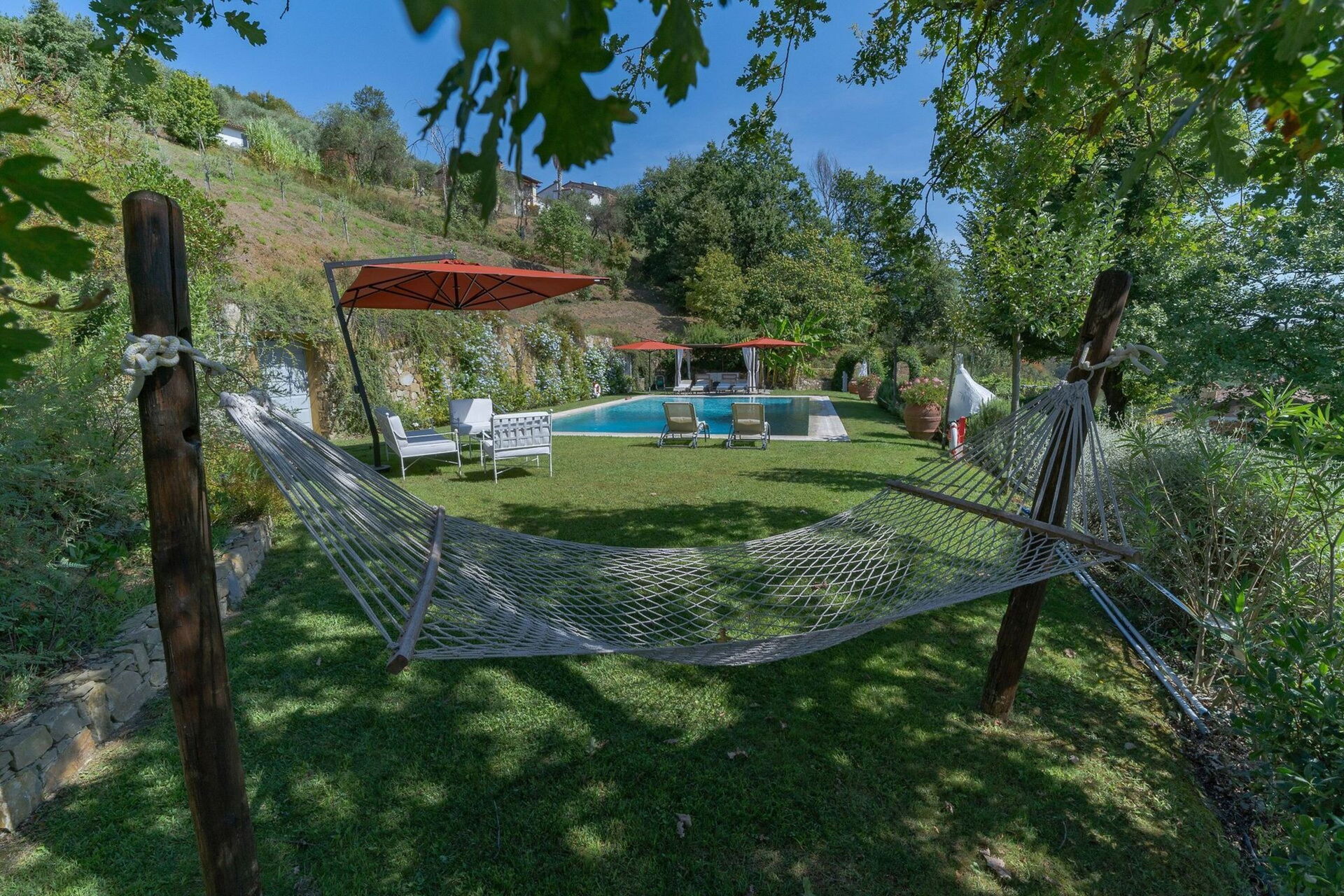 After arriving you’ll find a beautiful clean well-maintained property with views of the hills ideal for a relaxing holiday in Tuscany. After a busy day of sightseeing, spend some time with friends and family poolside enjoying a glass of wine - a perfect way to unwind at the end the day. For your pleasure, on the grounds there is a patio and barbecue grill. There is a kitchen including coffee machine, microwave, toaster and refrigerator, as well as, plenty of tableware and cutlery for up to 18 people. If you prefer to dine 'al fresco', there is a fully furnished veranda where you can enjoy the weather while dining outdoors.