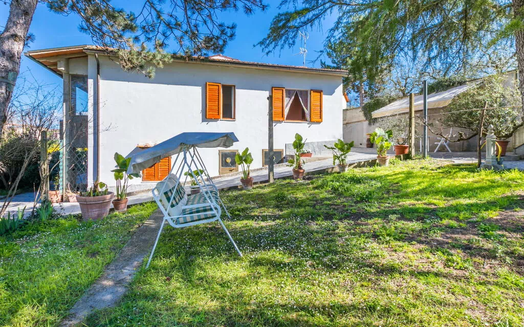 The House "La Casa del Ponte Romano" is a detached vacation rental situated in the Pogi district, 2.5 km from the center of Bucine and 8 km from Ambra. It offers a secluded location in a residential area, only 10 meters from the river and surrounded by the beautiful Tuscan countryside. The property boasts a spacious 2,000 square meter fenced garden, complete with a wildlife area and trees, as well as parking for two cars on the premises. Guests will enjoy amenities such as a yard, internet Wi-Fi, and parking.