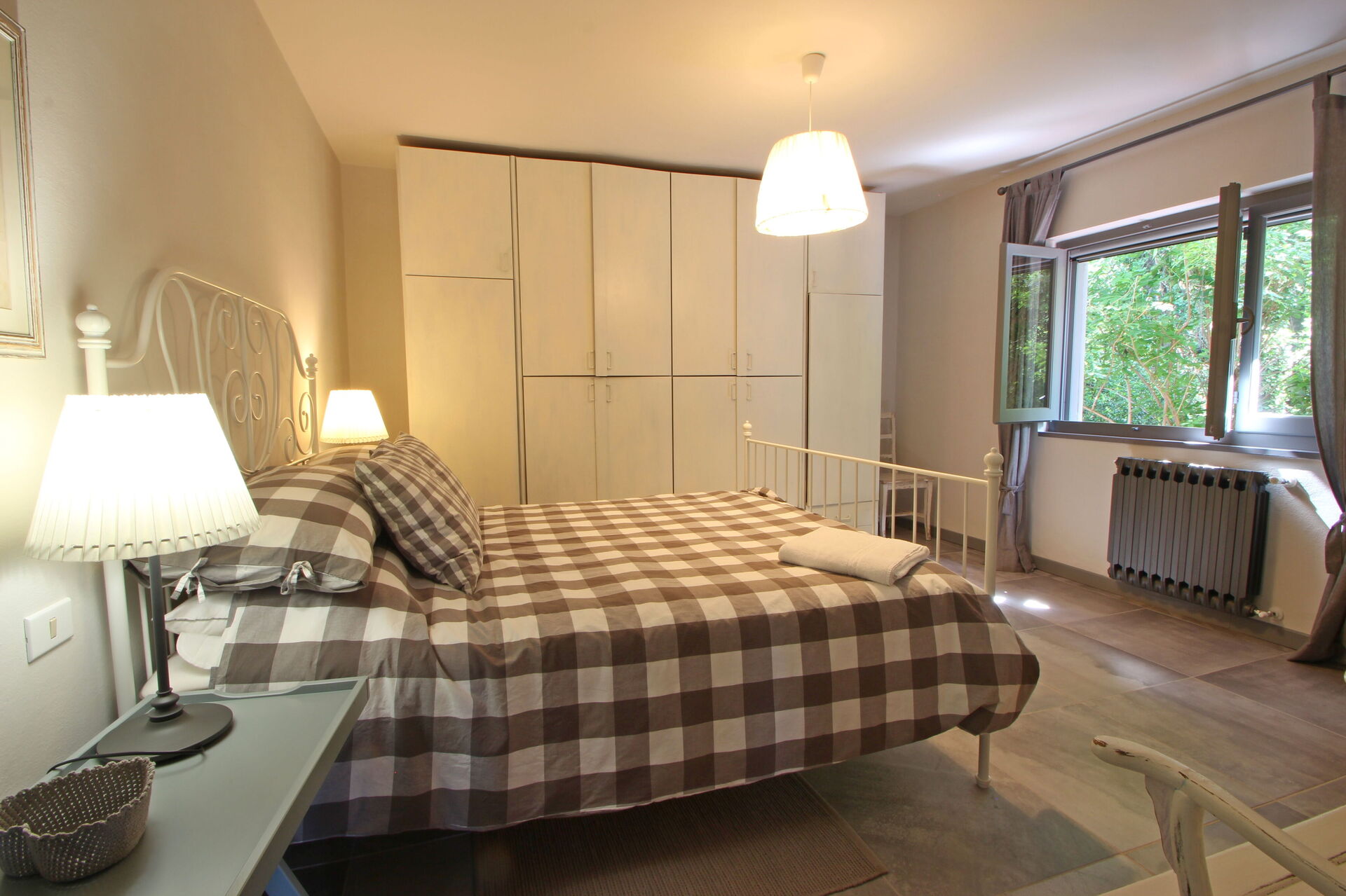 When you arrive you will be welcomed by the owner or manager where you’ll find a nice clean well-maintained property with views of the hills and the mountains perfect for a peaceful holiday in Tuscany. For your enjoyment you will find a private garden where you can relax while enjoying a nice cold beverage after a busy day of visiting museums. A real benefit of renting a home, instead of multiple hotel rooms, is the ability to relax after a busy day of sightseeing with family and friends. Enjoy a meal together along with some local wine to finish the day. If you enjoy cooking for family and friends there is a well-equipped kitchen including coffee machine, microwave, toaster, stove and refrigerator, as well as, plenty of tableware and cutlery for up to six people. If you prefer to dine 'al fresco', there is a fully furnished balcony where you can enjoy the weather while dining outdoors.