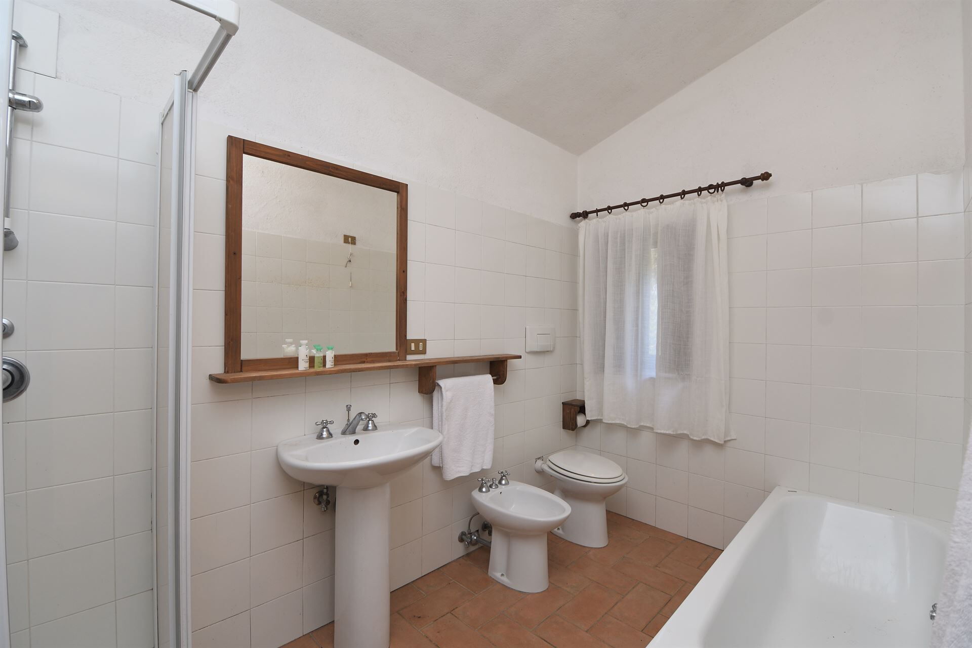 Bathroom : sink, bathtub, bidet, shower, toilet.