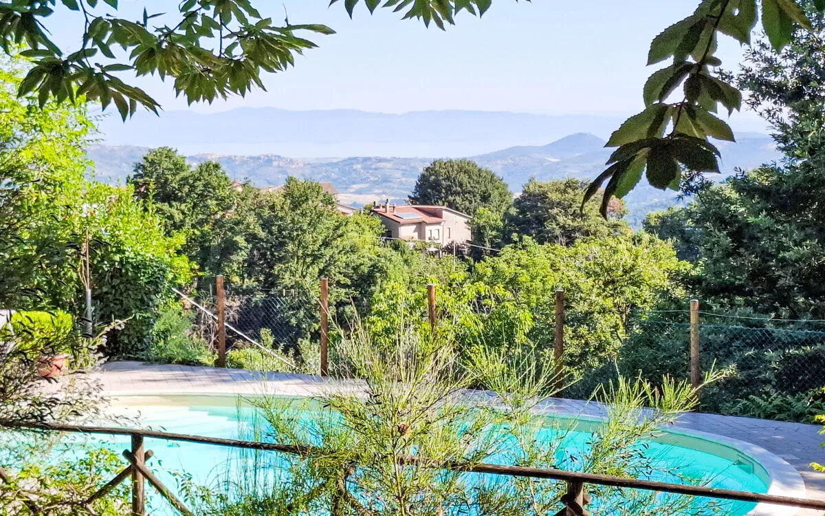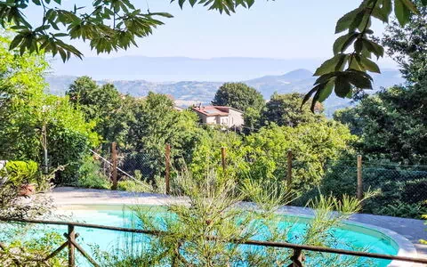 You are considering the cosy, comfortable country house "I Tre Castagni", a detached property surrounded by trees in Piegaro, Italy. It boasts a private park spanning 2,000 square meters, fenced for your privacy. Enjoy the luxury of an outdoor swimming pool (4 x 10 meters, depth ranging from 120 to 200 cm), available seasonally from June 1st to October 15th. Amenities include an outdoor shower, garden furniture, a barbecue area, and on-site parking for your convenience. While staying at this vacation rental, you'll have access to the Internet via WiFi.