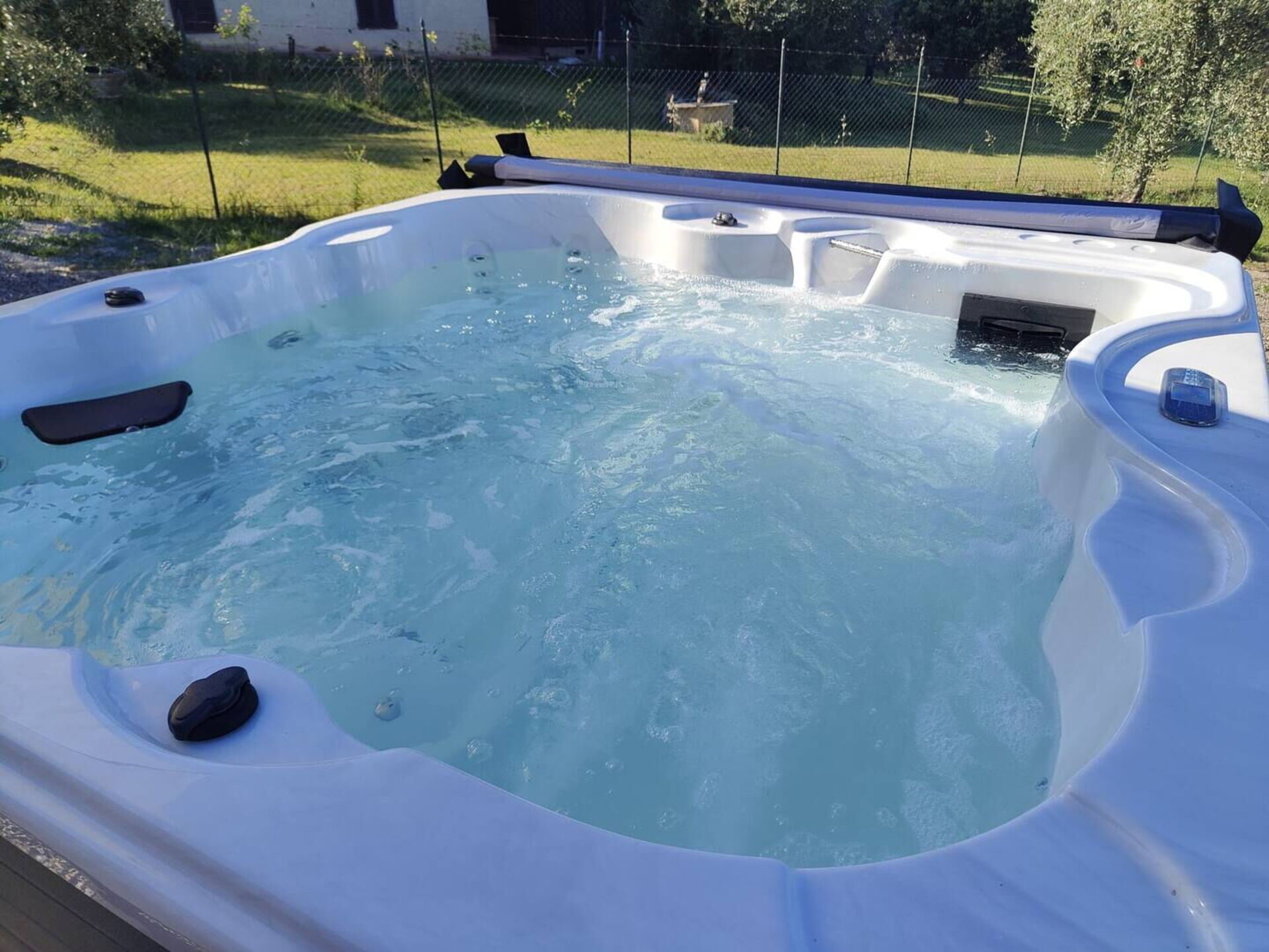 The interiors are tastefully furnished with traditional Tuscan materials. Outside, there is a private area furnished with a dining area where you can enjoy beautiful views of the surrounding landscape. Guests have an outdoor hot tub at their disposal.