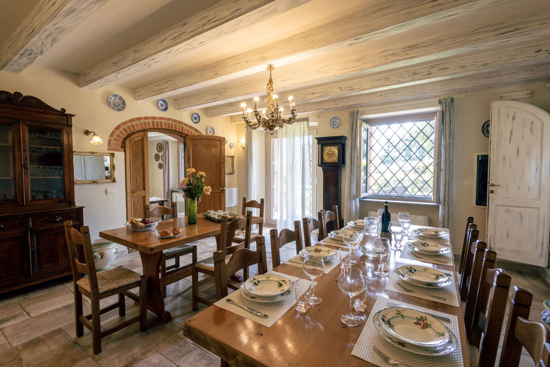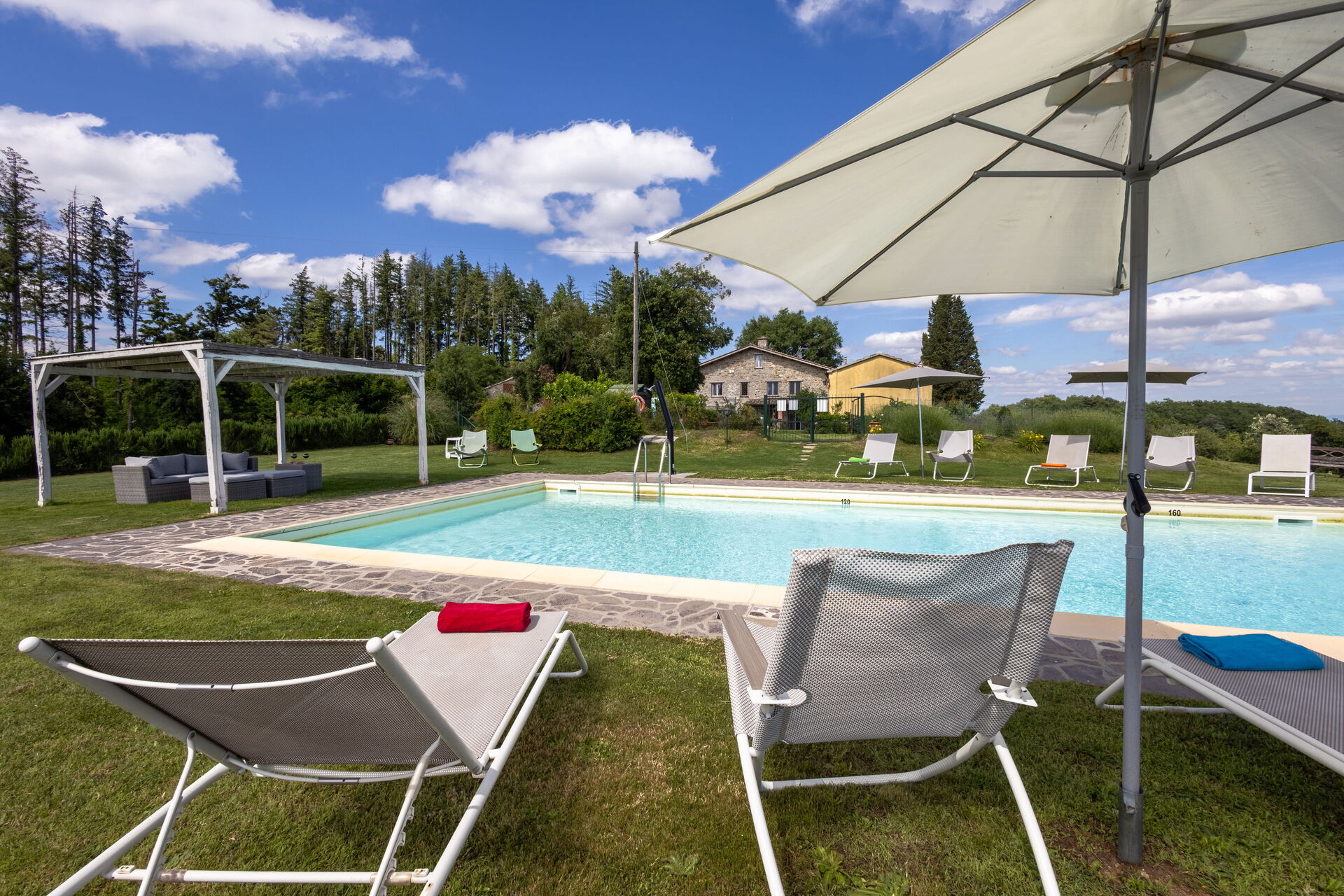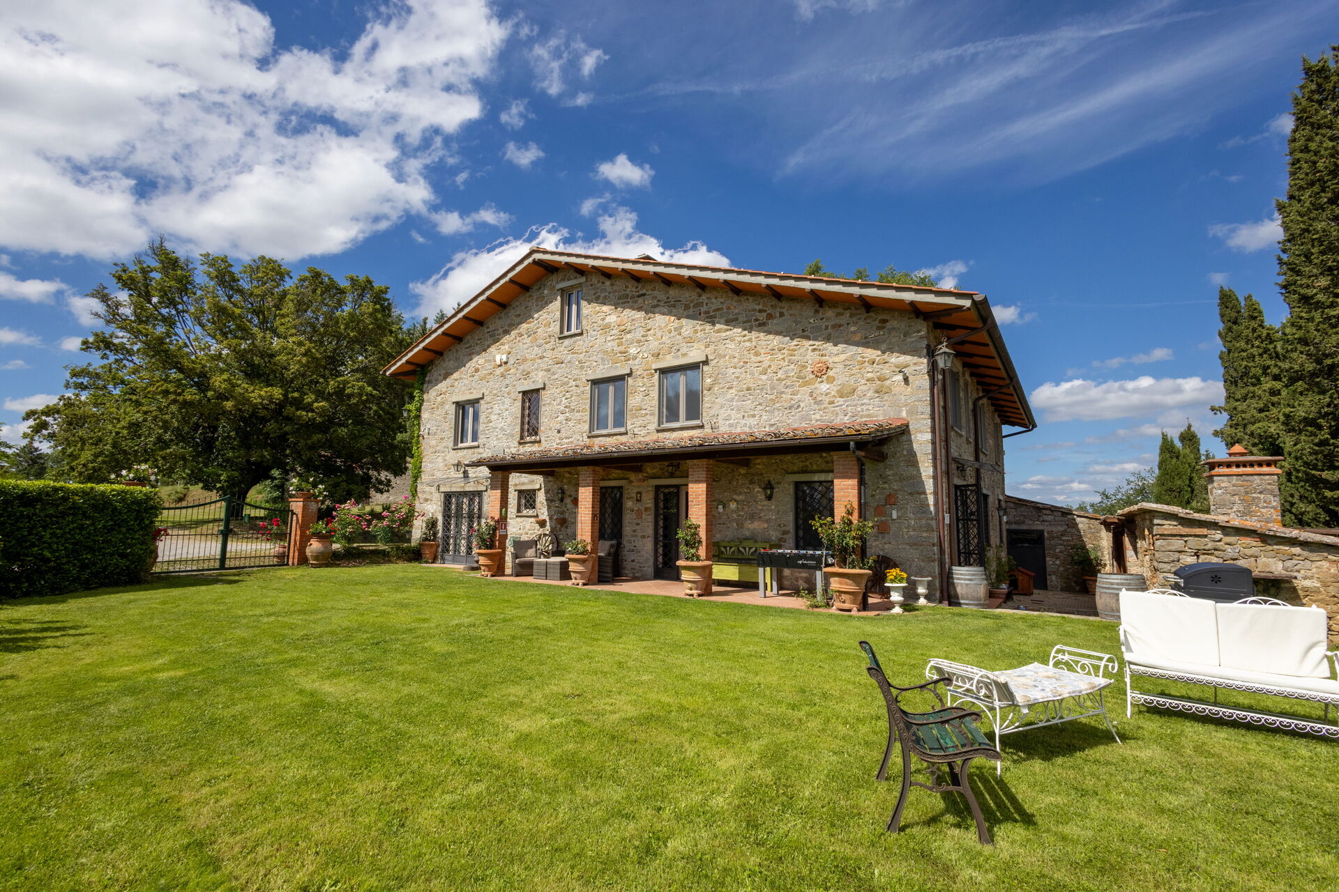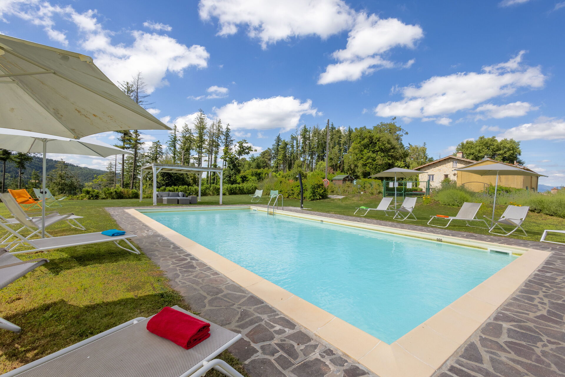Upon arrival at Montelucci Chianti Agrivilla you’ll find a beautiful clean well-maintained property with views of the mountains and the hills perfect for a splendid vacation in Tuscany. Regardless of how you spend your days - visiting museums, shopping, sightseeing or just driving in the countryside, when you arrive home you can relax with your family and friends at the pool for a perfect ending to another day in Tuscany. Outdoors you will also find a patio and barbecue grill. Dining with friends and family is a huge part of the Tuscan culture. Take advantage of the well-equipped kitchen to prepare meals using local produce while on your vacation. The kitchen includes coffee machine, microwave, toaster, stove and refrigerator, as well as, plenty of tableware and cutlery for up to 14 people. Dine 'al fresco' like a real Tuscan, the fully furnished veranda is the perfect setting to enjoy food, family and the nice Tuscan weather.