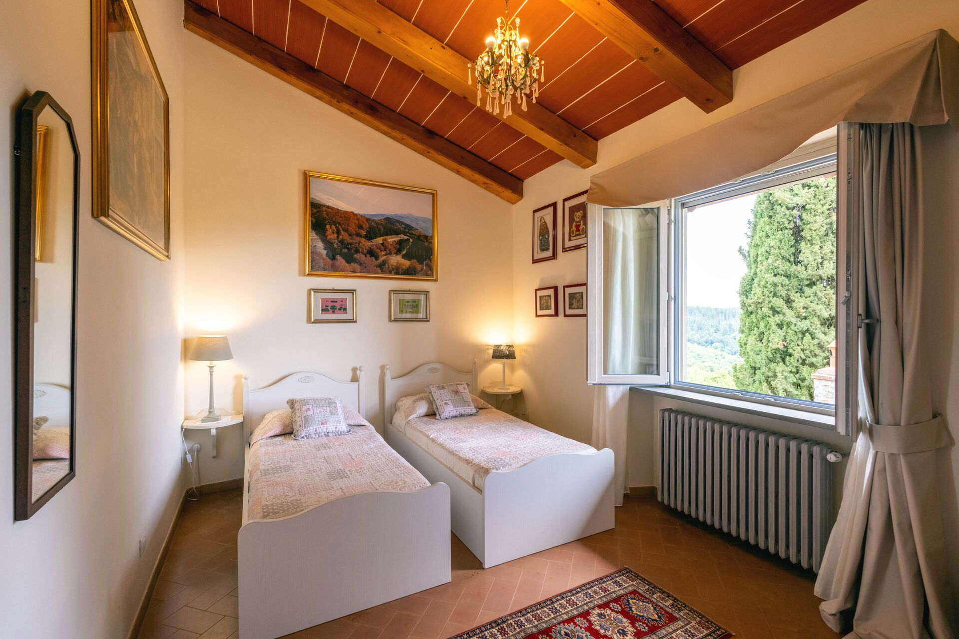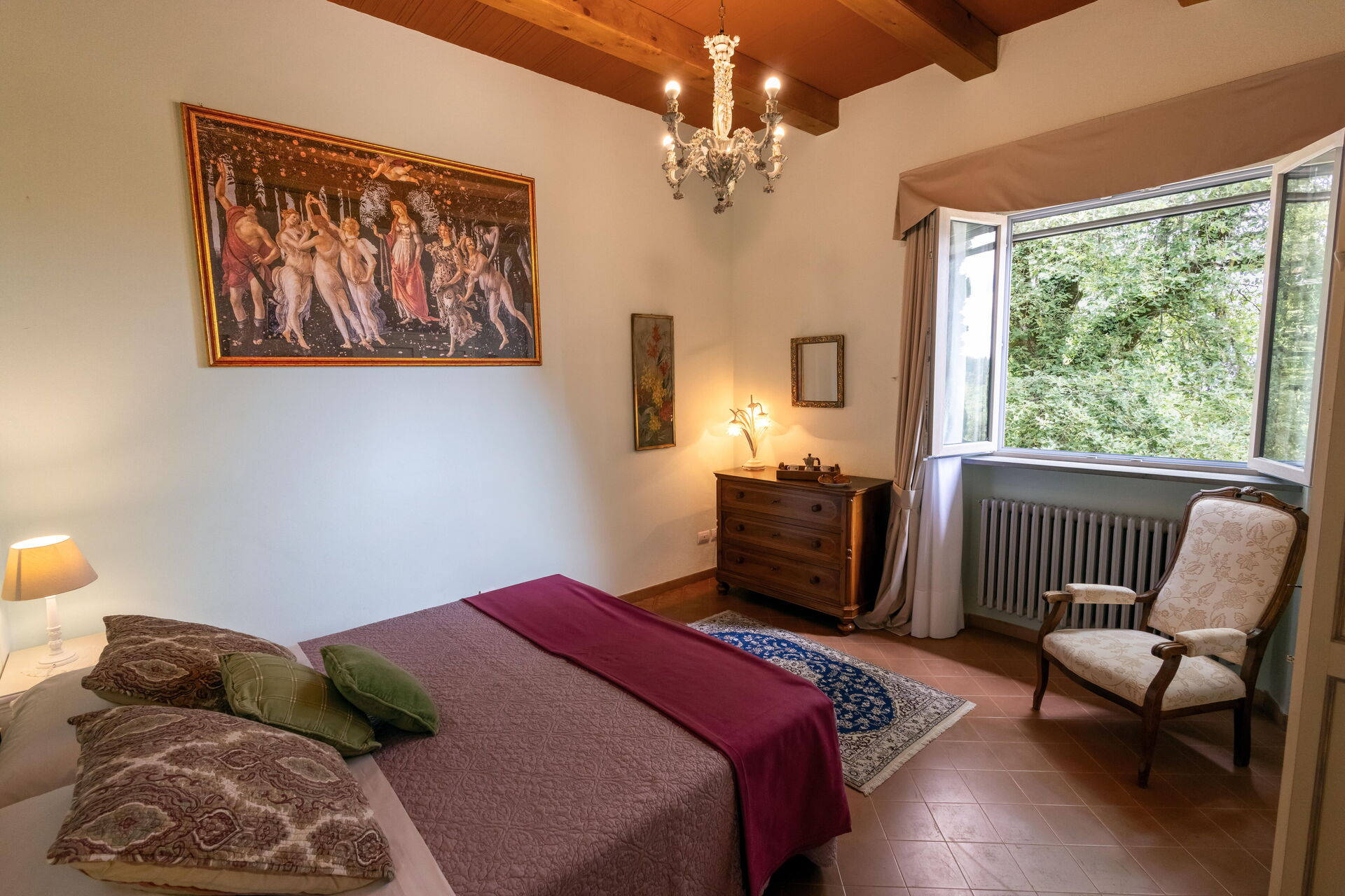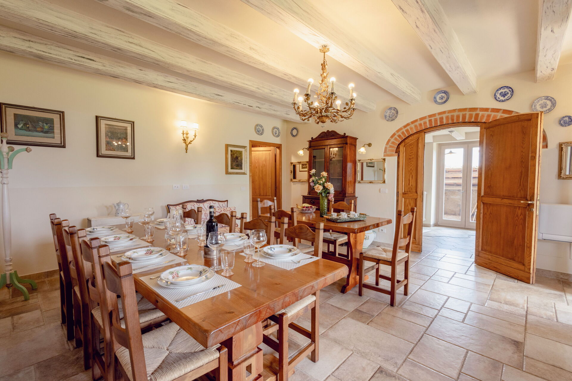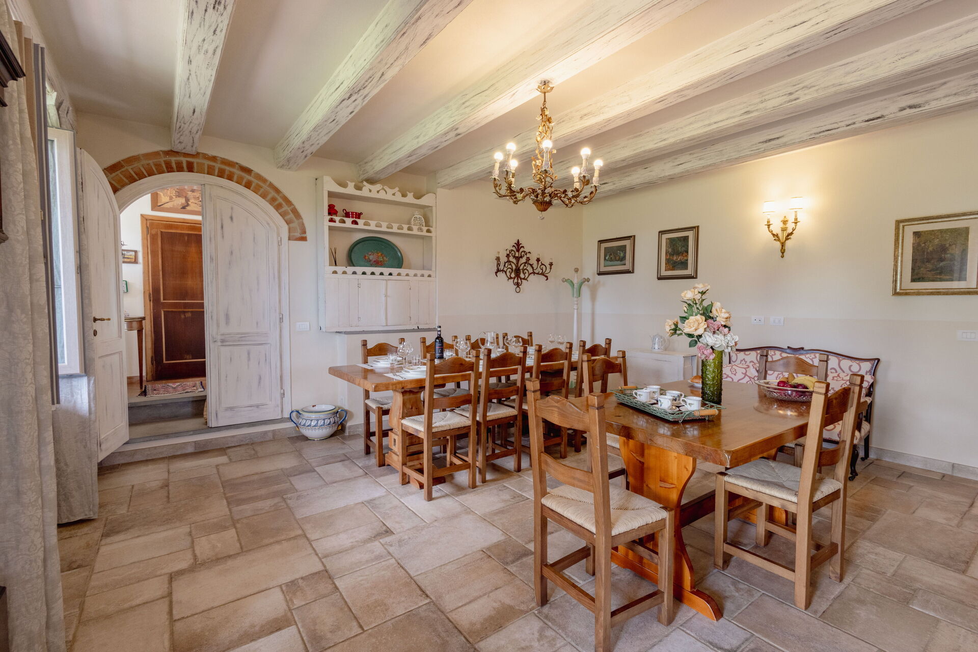 Upon arrival at Montelucci Chianti Agrivilla you’ll find a beautiful clean well-maintained property with views of the mountains and the hills perfect for a splendid vacation in Tuscany. Regardless of how you spend your days - visiting museums, shopping, sightseeing or just driving in the countryside, when you arrive home you can relax with your family and friends at the pool for a perfect ending to another day in Tuscany. Outdoors you will also find a patio and barbecue grill. Dining with friends and family is a huge part of the Tuscan culture. Take advantage of the well-equipped kitchen to prepare meals using local produce while on your vacation. The kitchen includes coffee machine, microwave, toaster, stove and refrigerator, as well as, plenty of tableware and cutlery for up to 14 people. Dine 'al fresco' like a real Tuscan, the fully furnished veranda is the perfect setting to enjoy food, family and the nice Tuscan weather.