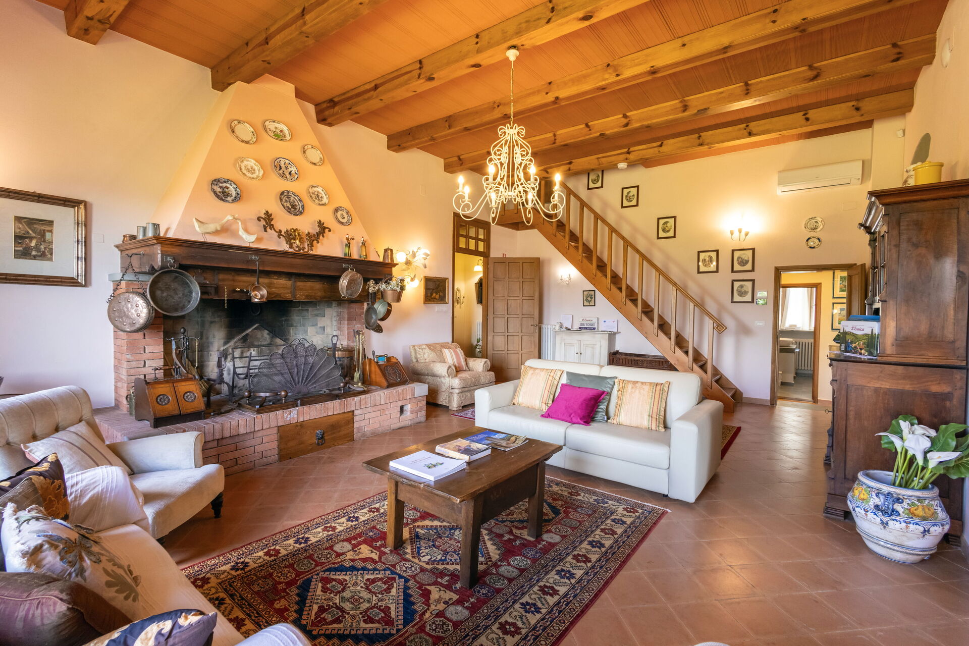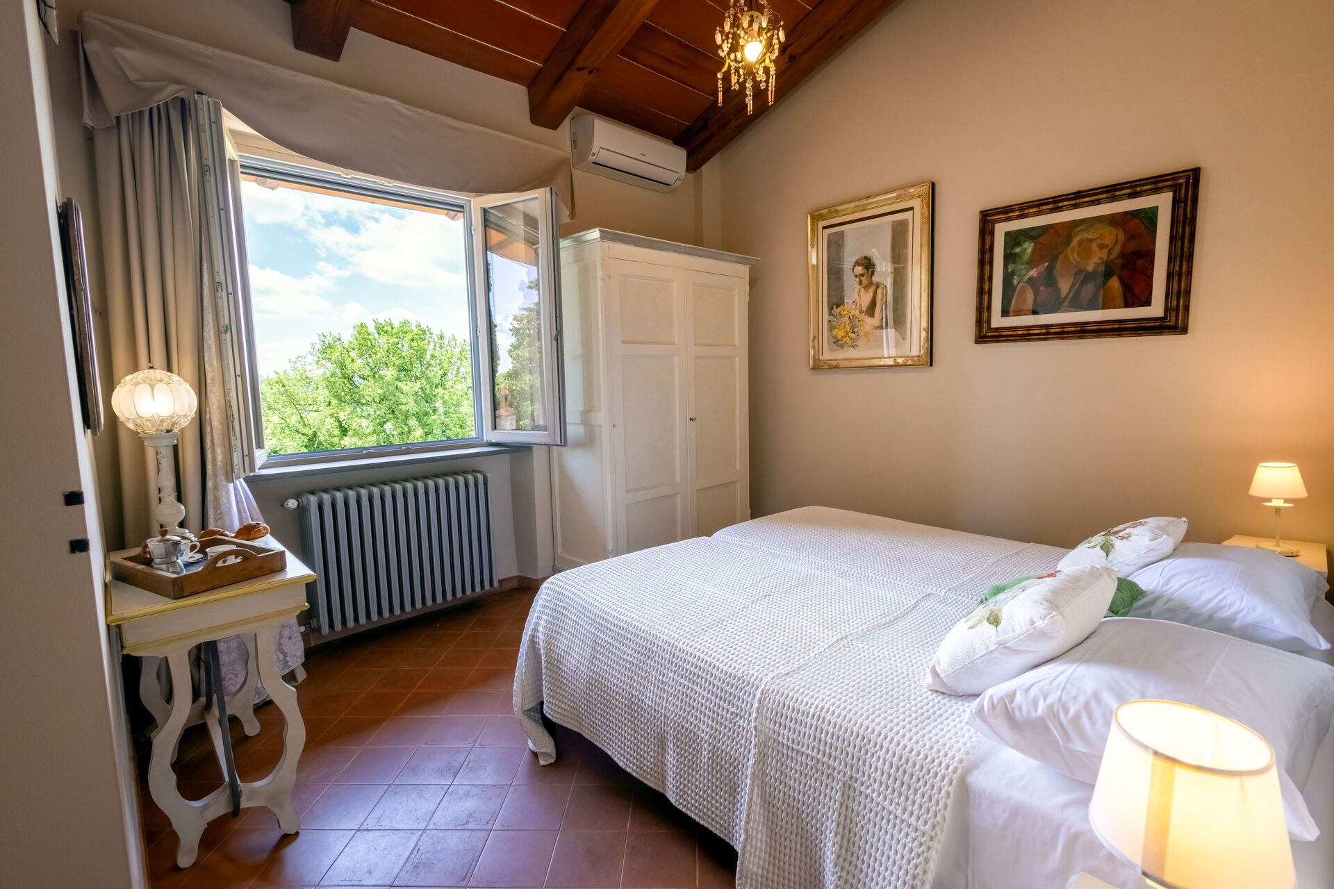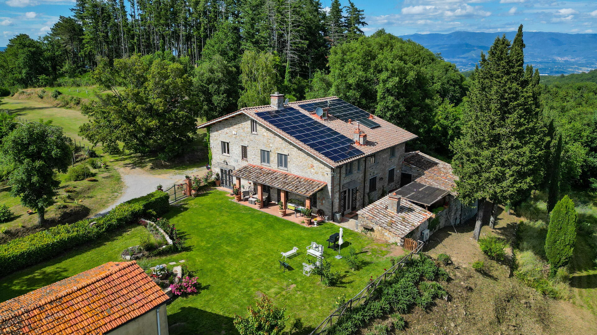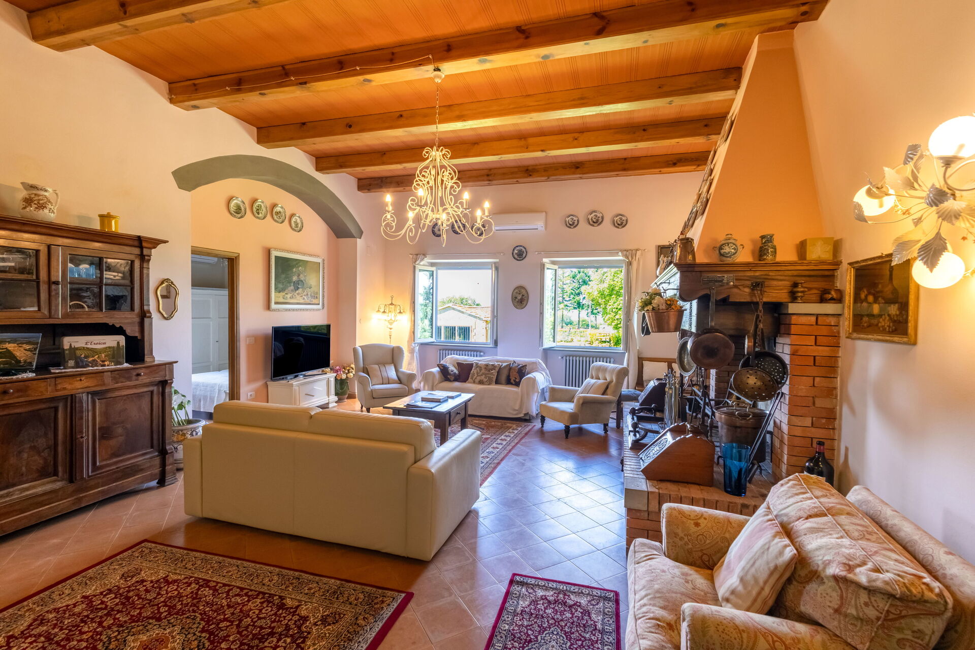 Upon arrival at Montelucci Chianti Agrivilla you’ll find a beautiful clean well-maintained property with views of the mountains and the hills perfect for a splendid vacation in Tuscany. Regardless of how you spend your days - visiting museums, shopping, sightseeing or just driving in the countryside, when you arrive home you can relax with your family and friends at the pool for a perfect ending to another day in Tuscany. Outdoors you will also find a patio and barbecue grill. Dining with friends and family is a huge part of the Tuscan culture. Take advantage of the well-equipped kitchen to prepare meals using local produce while on your vacation. The kitchen includes coffee machine, microwave, toaster, stove and refrigerator, as well as, plenty of tableware and cutlery for up to 14 people. Dine 'al fresco' like a real Tuscan, the fully furnished veranda is the perfect setting to enjoy food, family and the nice Tuscan weather.