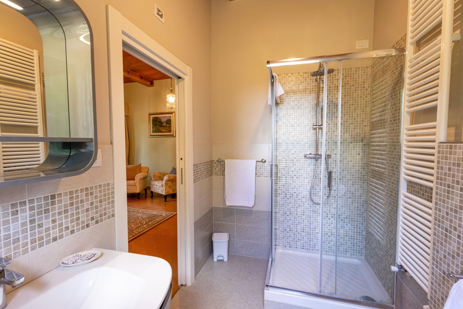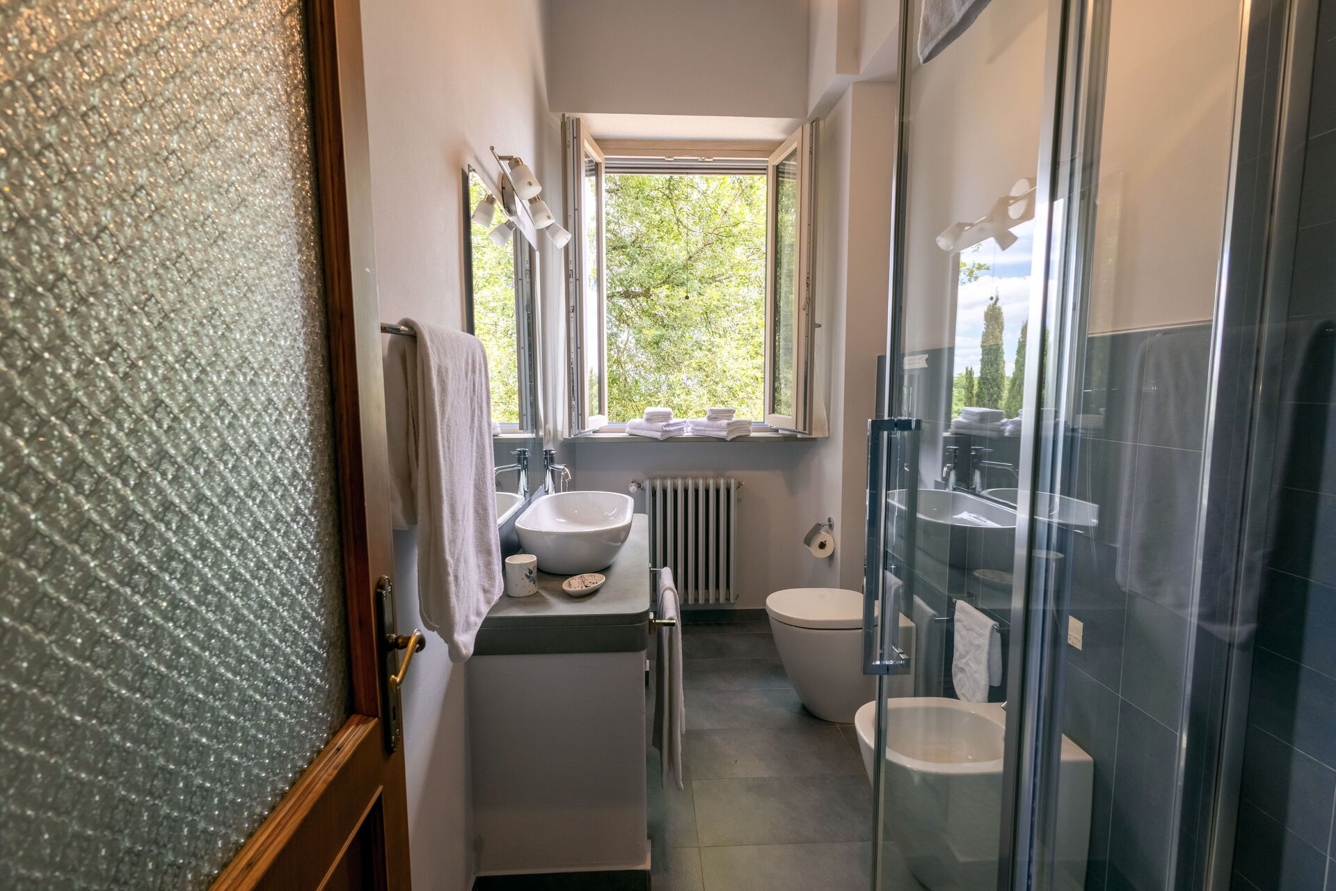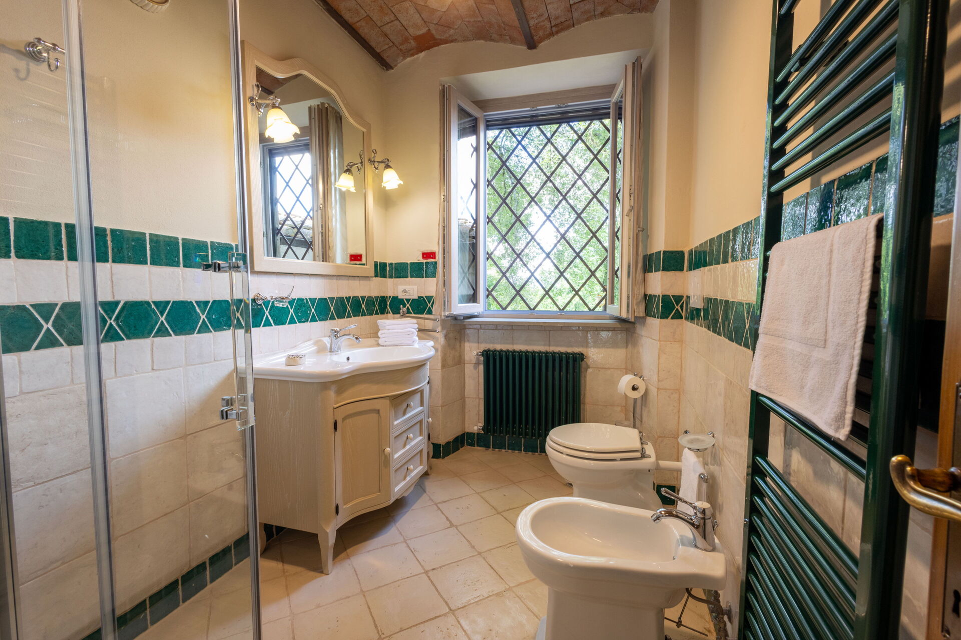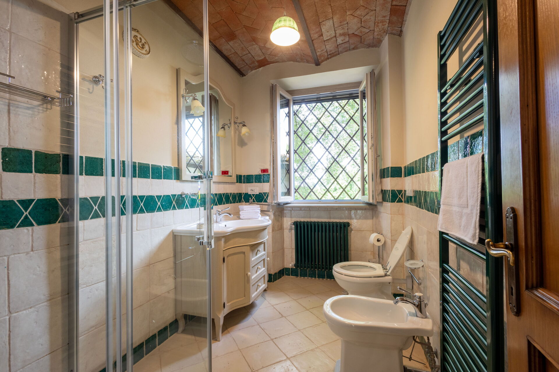 Upon arrival at Montelucci Chianti Agrivilla you’ll find a beautiful clean well-maintained property with views of the mountains and the hills perfect for a splendid vacation in Tuscany. Regardless of how you spend your days - visiting museums, shopping, sightseeing or just driving in the countryside, when you arrive home you can relax with your family and friends at the pool for a perfect ending to another day in Tuscany. Outdoors you will also find a patio and barbecue grill. Dining with friends and family is a huge part of the Tuscan culture. Take advantage of the well-equipped kitchen to prepare meals using local produce while on your vacation. The kitchen includes coffee machine, microwave, toaster, stove and refrigerator, as well as, plenty of tableware and cutlery for up to 14 people. Dine 'al fresco' like a real Tuscan, the fully furnished veranda is the perfect setting to enjoy food, family and the nice Tuscan weather.