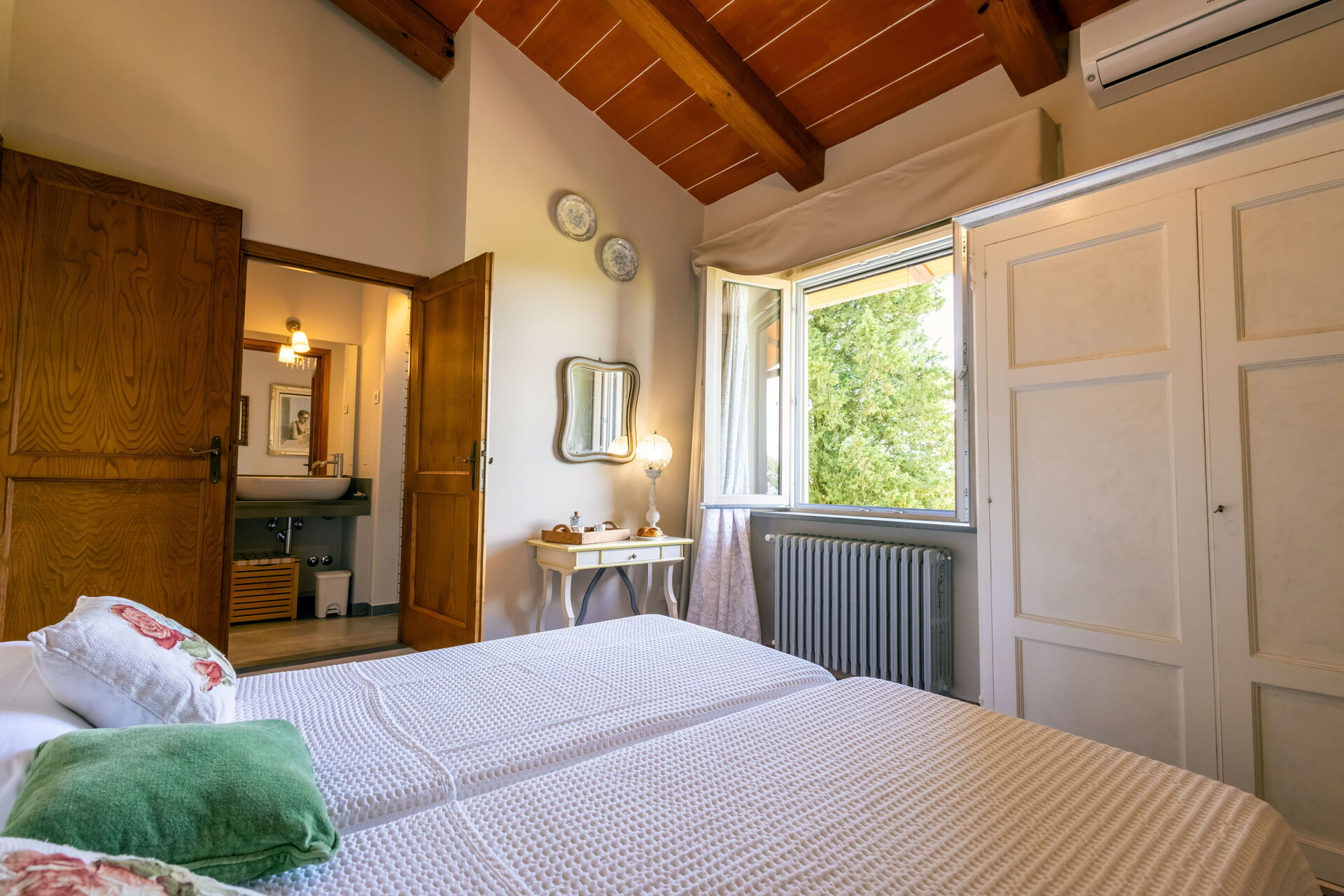 Bedroom + Ensuite Bathroom 3 (14 m2): two single beds (length: 2m, width: 1.6m), WIFI internet, air conditioning, mosquito net, working desk, basin, toilet, bidet, shower, hairdryer.