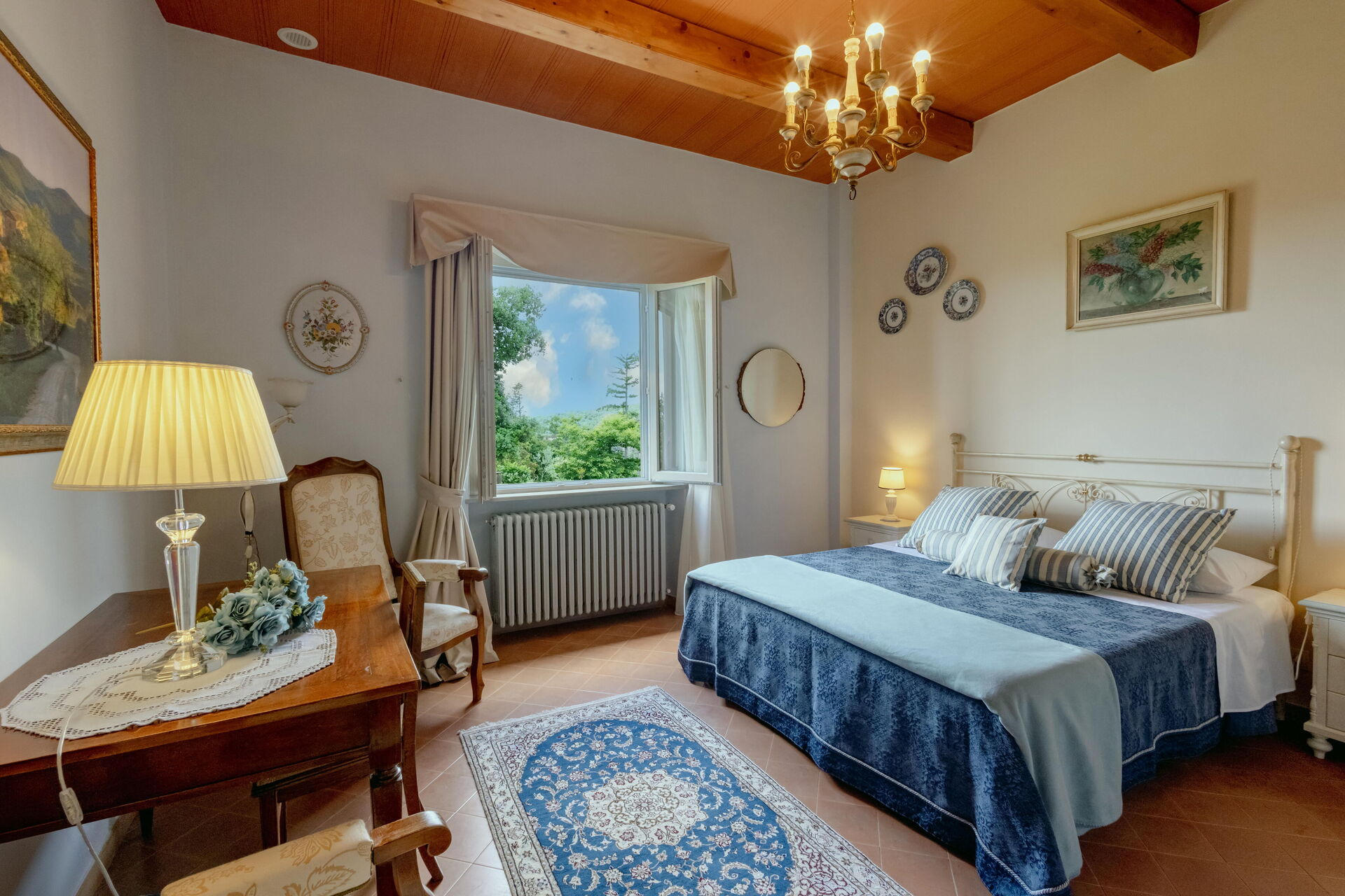 Bedroom + Ensuite Bathroom 2 (14 m2): double bed (length: 2m, width: 1.6m), WIFI internet, internet, air conditioning, mosquito net, two armchairs, working desk, basin, toilet, bidet, shower, hairdryer.