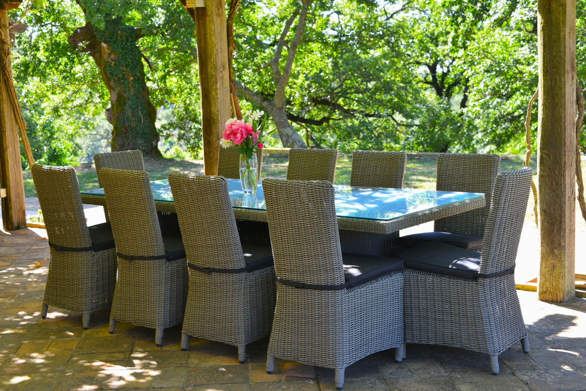 Garden: swimming pool (length: 10m, width: 5m), barbecue, al fresco dining, dining table, gazebo, garden furniture, eight sunbeds.