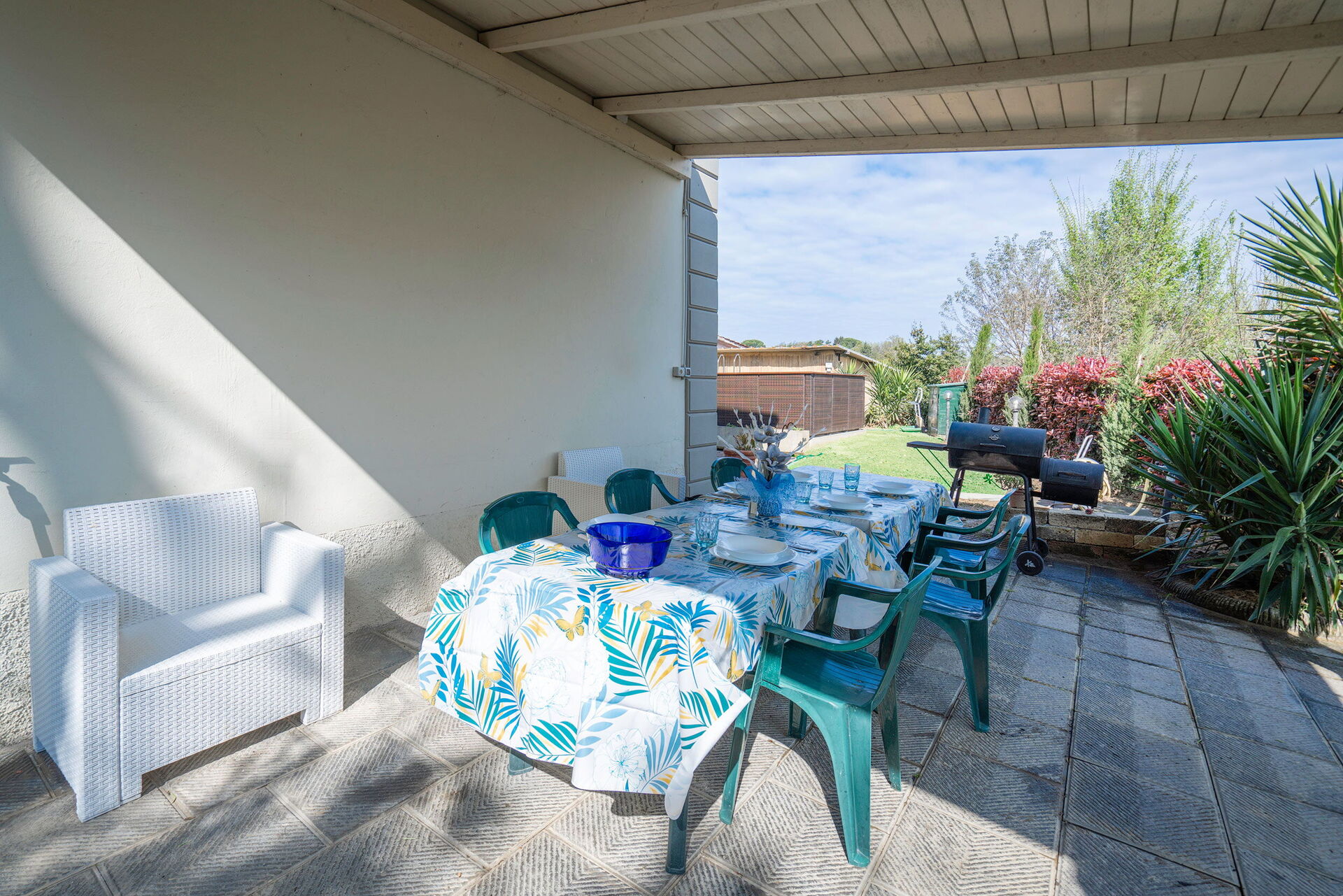 Veranda: al fresco dining, dining table (people: 10), barbecue, garden furniture.