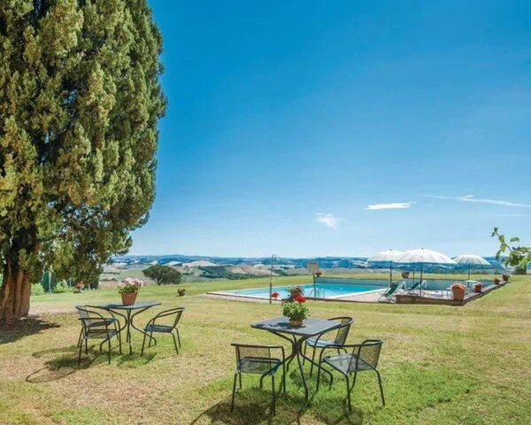This independent holiday villa offers an exceptional retreat in the scenic countryside of Monteroni D'arbia, Italy, combining historic charm with modern comfort and convenience. The property forms part of an exclusive estate comprising two separate historic villas, Villa Il Tinaio and Villa Santo Stefano, positioned approximately 150 meters apart. Villa Il Tinaio presents a magnificent residence characterized by its wonderful panoramic views and generous proportions, ideal for large family gatherings or group celebrations. The villa features comprehensive amenities including reliable internet wifi connectivity available throughout the ground floor and at the reception area, as well as ample parking facilities for multiple vehicles. The estate management ensures complete privacy and tranquility for villa guests, with strictly controlled access that separates the villa areas from other parts of the property. The outdoor swimming pool provides a refreshing focal point during warmer months, while the spacious interiors offer comfort and elegance across multiple floors.