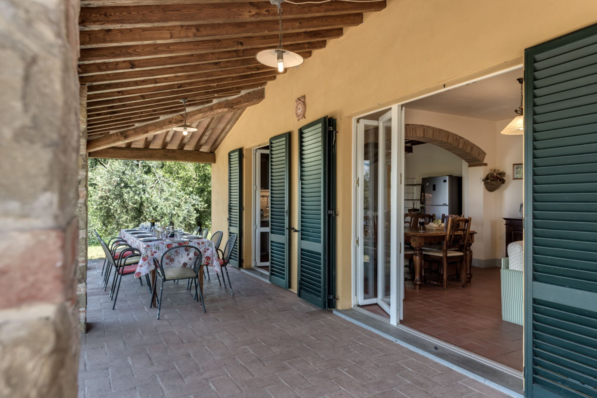 The outdoor spaces of Bellaria Independent Villa are designed to maximize your enjoyment of the stunning Valdichiana surroundings. The property features a non-heated swimming pool measuring 4.5x9 m, open from 01/05 to 31/10, providing refreshing relaxation during the warmer months. The pool area is set within a fenced garden secured with netting, ensuring safety and privacy for all guests. Adjacent to the kitchen, you will find a spacious porch that serves as an ideal spot for outdoor dining while taking in the panoramic views of olive tree terraces and woodland. The grounds include a brick barbecue facility, perfect for preparing al fresco meals and enjoying warm evenings under the Tuscan sky. The garden area provides ample space for children to play safely, and the elevated hillside position ensures that outdoor areas benefit from gentle breezes and spectacular vistas across the valley.