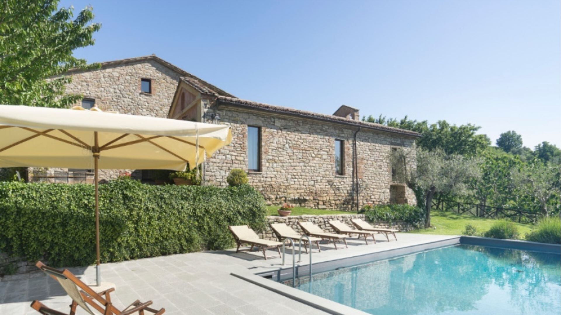 This charming holiday villa represents one of the oldest and most historically significant properties within a prestigious estate near Perugia, Italy. Dating back to the fourteenth century, this luxury farmhouse features an adjoining church that once served as the parish of the estate, dedicated to San Savino, the bishop of Spoleto. The villa retains authentic architectural elements including imposing ancient stone walls and traditional terracotta floors that speak to its rich heritage. Today, you can still perceive the history, sense of congregation and peace that have always characterized this remarkable building. The property offers accommodation for up to 8 guests across its elegant interiors and features private parking for your convenience. The villa boasts a private heated swimming pool set within an elegant garden, complete with a terrace that offers breathtaking views over the surrounding valley. This exceptional vacation rental combines centuries of history with modern luxury amenities, creating an unforgettable retreat in the heart of Umbria.