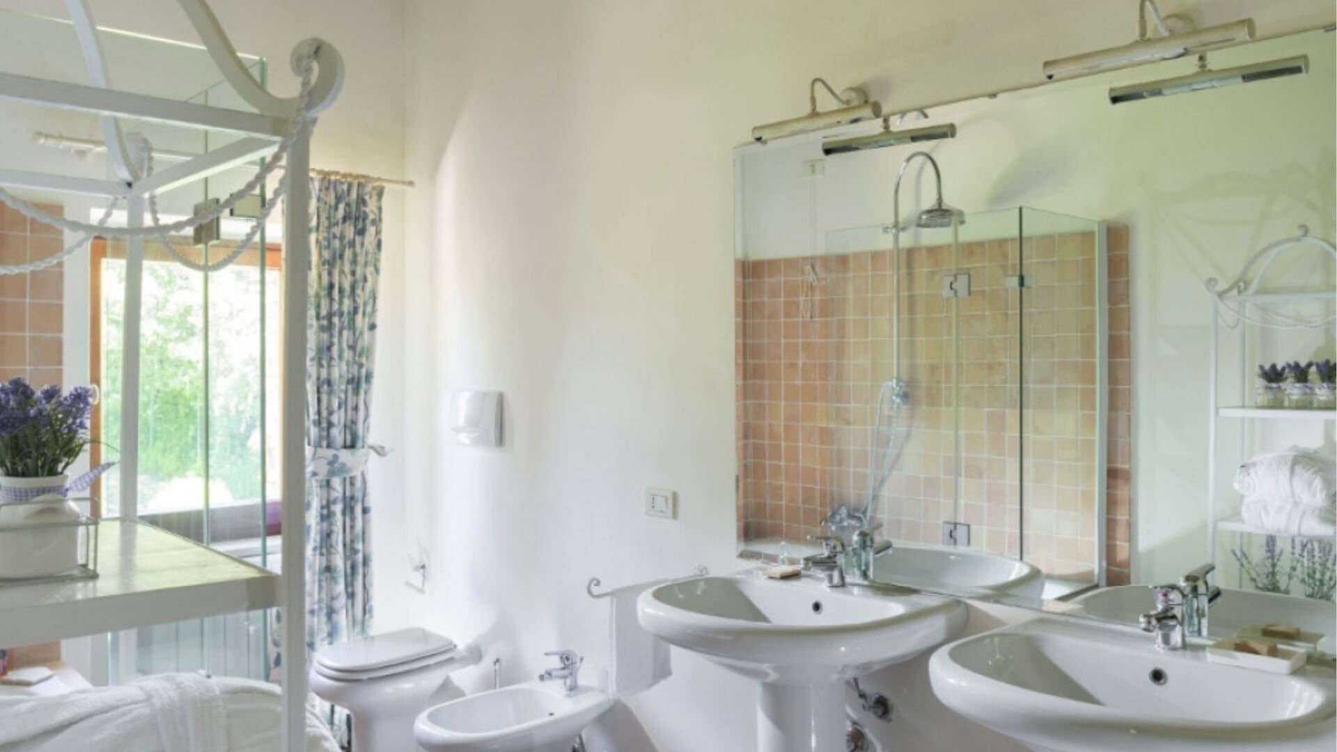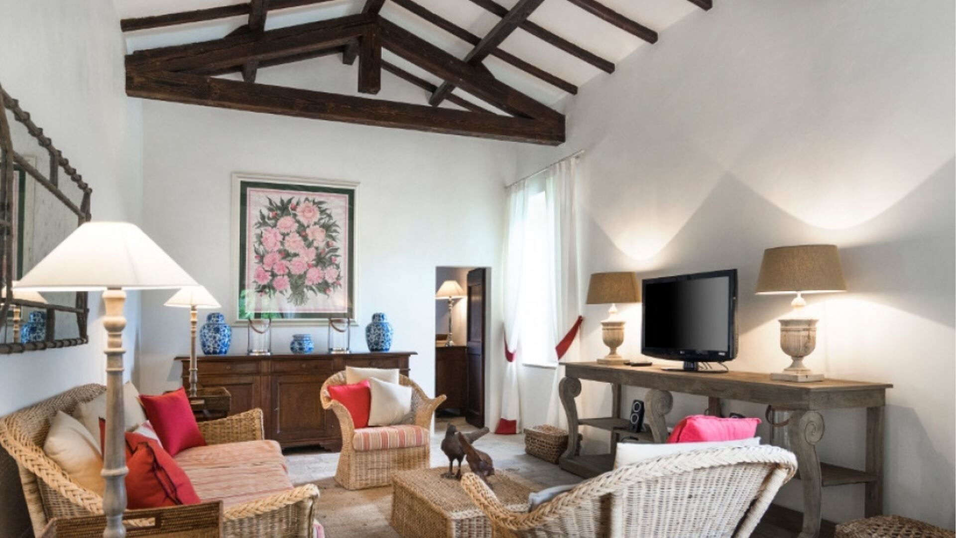 The villa accommodates up to 8 guests comfortably across its thoughtfully designed interior spaces, featuring 4 bedrooms and 4 bathrooms. The sleeping arrangements include 3 double bedrooms, each appointed with its own en suite bathroom, ensuring privacy and convenience for guests. Additionally, there is 1 twin bedroom that also benefits from an en suite bathroom, providing flexible accommodation options for families or groups. The villa's layout preserves the character of its fourteenth-century origins while incorporating modern comfort throughout. The living spaces include a spacious living room that opens onto the front terrace, creating a seamless flow between indoor and outdoor entertaining areas. The fully equipped kitchen provides ample space for meal preparation and features modern appliances integrated into the historic setting. A spacious laundry room offers practical utility space separate from the main living areas. Each bathroom is designed with contemporary fixtures and includes a hair dryer for your convenience, combining functionality with the villa's elegant aesthetic.