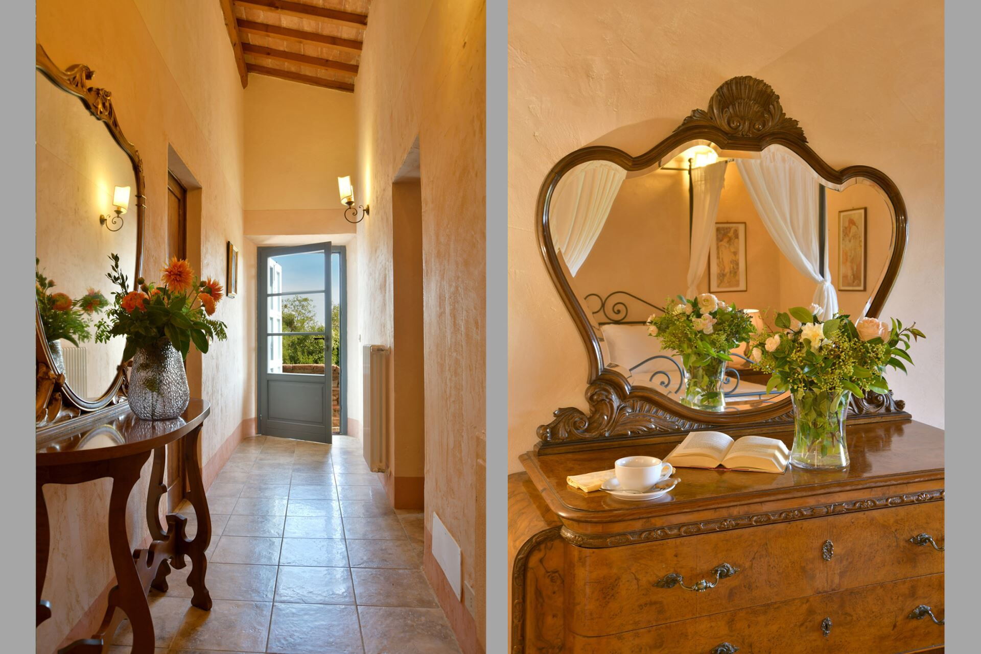 Villa Ginevra offers exceptional accommodation across two floors, comfortably hosting up to 18 guests in 9 bedrooms, each with its own private bathroom. The villa's flexible layout allows it to function as a single residence or be divided into two independent apartments, each accommodating 10 guests. The ground floor features 2 fully equipped kitchens, 2 sitting rooms, and 2 living rooms, each with its own fireplace. Additionally, the ground floor houses 2 double bedrooms, both with private bathrooms and direct access to the garden. The first floor accommodates the remaining 6 bedrooms, all with en-suite bathrooms. The first floor also includes a double suite with a private bathroom and an exclusive lounge area where 2 additional beds can be arranged if needed. The property can accommodate a maximum of 2 extra single beds and offers options for folding beds suitable for children aged 4 to 8 years old. One crib or baby bed and one high chair are provided at no additional charge, with extra items available for weekly rental.