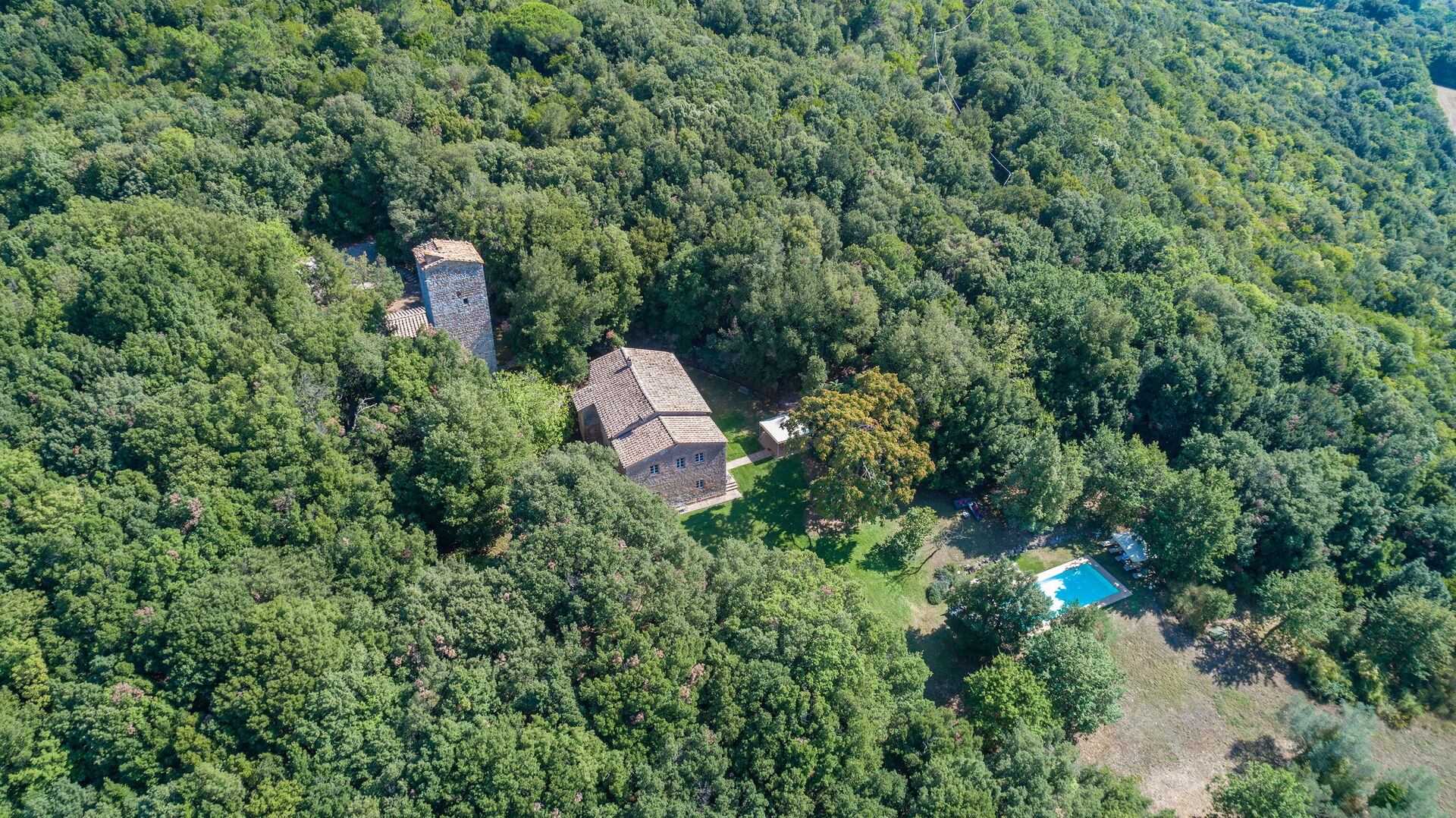 This holiday villa for rent forms a single complex with the adjoining medieval Tower. The two buildings are in a position of extraordinary beauty and can accommodate up to 14 people.