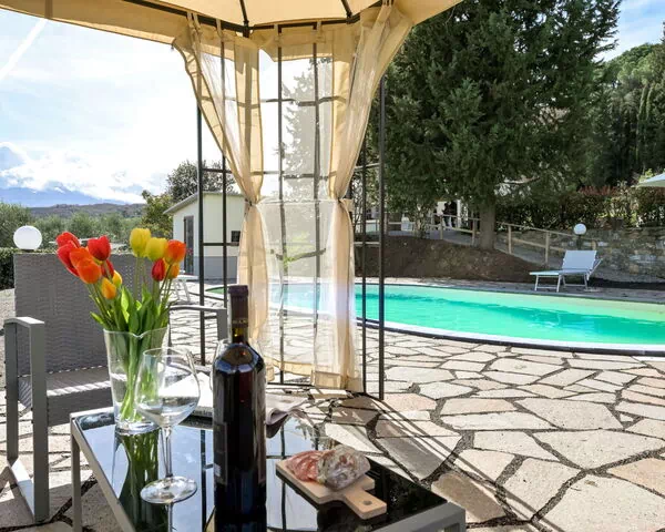 Embrace the serene outdoor spaces at "Il Cipresso". Bask in the sun on the terraced garden adorned with trees and a wildlife area. Take a refreshing dip in the kidney-shaped swimming pool (9 x 5 meters, depth 120 cm, open from April 15 to October 15). Rinse off in the outdoor shower and relax under the pergola with garden furniture. Fire up the barbecue for alfresco dining, and enjoy ample parking at the house.