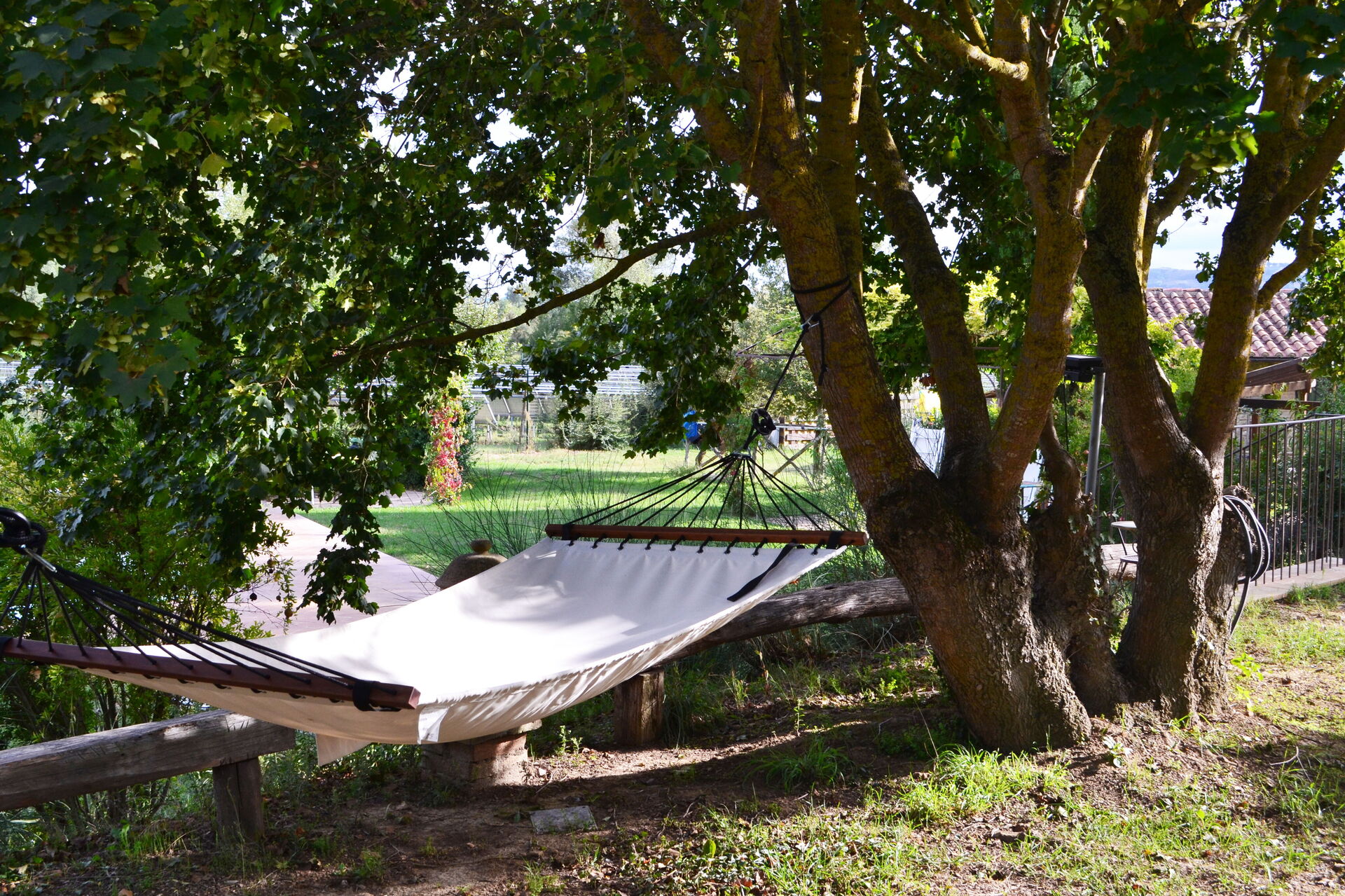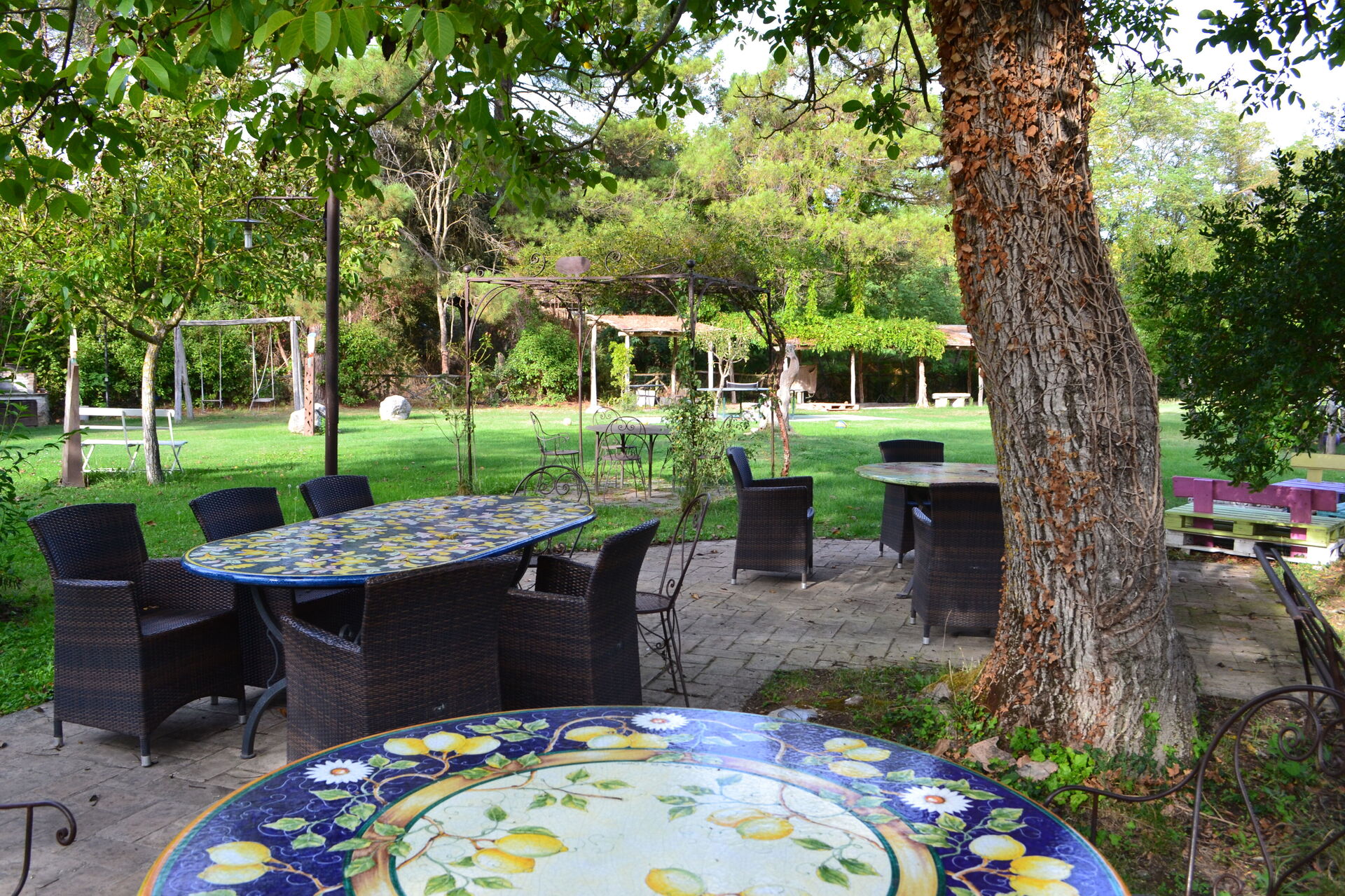 The living capacity for the entire property is 48 persons; in the garden there is a very large covered outdoor space where people can eat together.