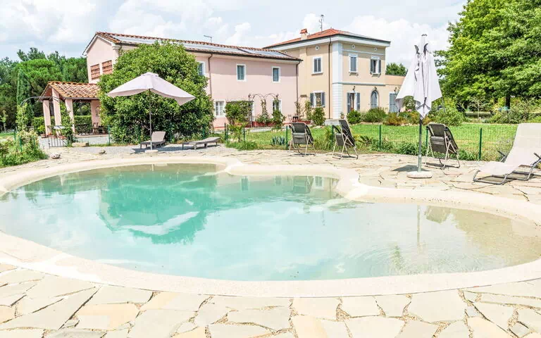 Azalea is a cozy and comfortable detached house that underwent renovation in 2022. It is surrounded by trees and meadows, offering a tranquil and picturesque setting. The property features a 1-hectare shared area with fencing, providing ample outdoor space for relaxation. One of the highlights is the fenced swimming pool (50 square meters, depth 100-130 cm), available seasonally from May 15 to October 30. Guests can enjoy amenities such as an outdoor shower, barbecue house, and a children's playground. The owner or gardener ensures proper pool maintenance. The house itself boasts air conditioning, a washing machine, and private parking for two cars on the premises. Whether you're seeking a vacation rental or a holiday rental, Azalea offers a comfortable and well-equipped base for your stay in Fucecchio, Italy.