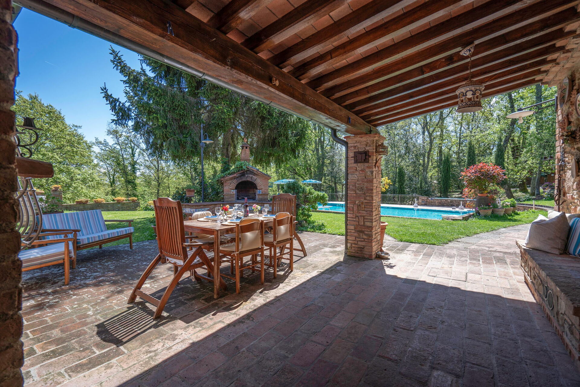 Upon arrival you will be welcomed by the owner or manager where you’ll find a beautiful clean well-maintained property perfect for a relaxing vacation in Tuscany. Regardless of how you spend your days - visiting museums, shopping, sightseeing or just driving in the countryside, when you arrive home you can unwind with your family and friends at the pool for a perfect ending to another day in Tuscany. Sharing a meal with friends and family is a huge part of the Tuscan culture. Take advantage of the well-equipped kitchen to prepare meals using local produce while on your vacation. The kitchen includes coffee machine, microwave, stove and refrigerator, as well as, plenty of tableware and cutlery for up to 12 people.