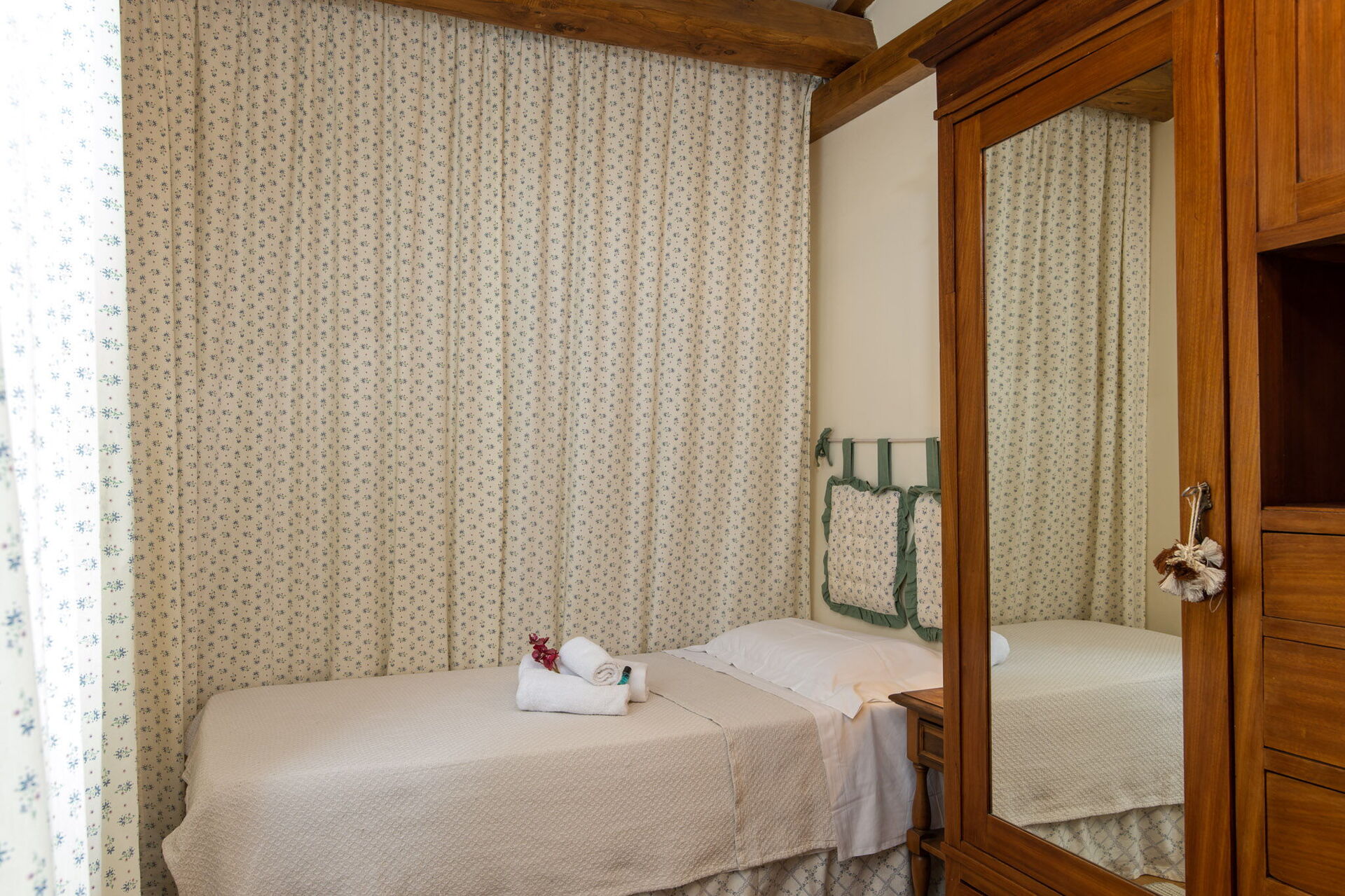 Bedroom + Ensuite Bathroom: double bed (length: 190m, width: 160m), WIFI internet, internet, basin, bidet, shower, hairdryer, bathroom with no window, exit to the garden.