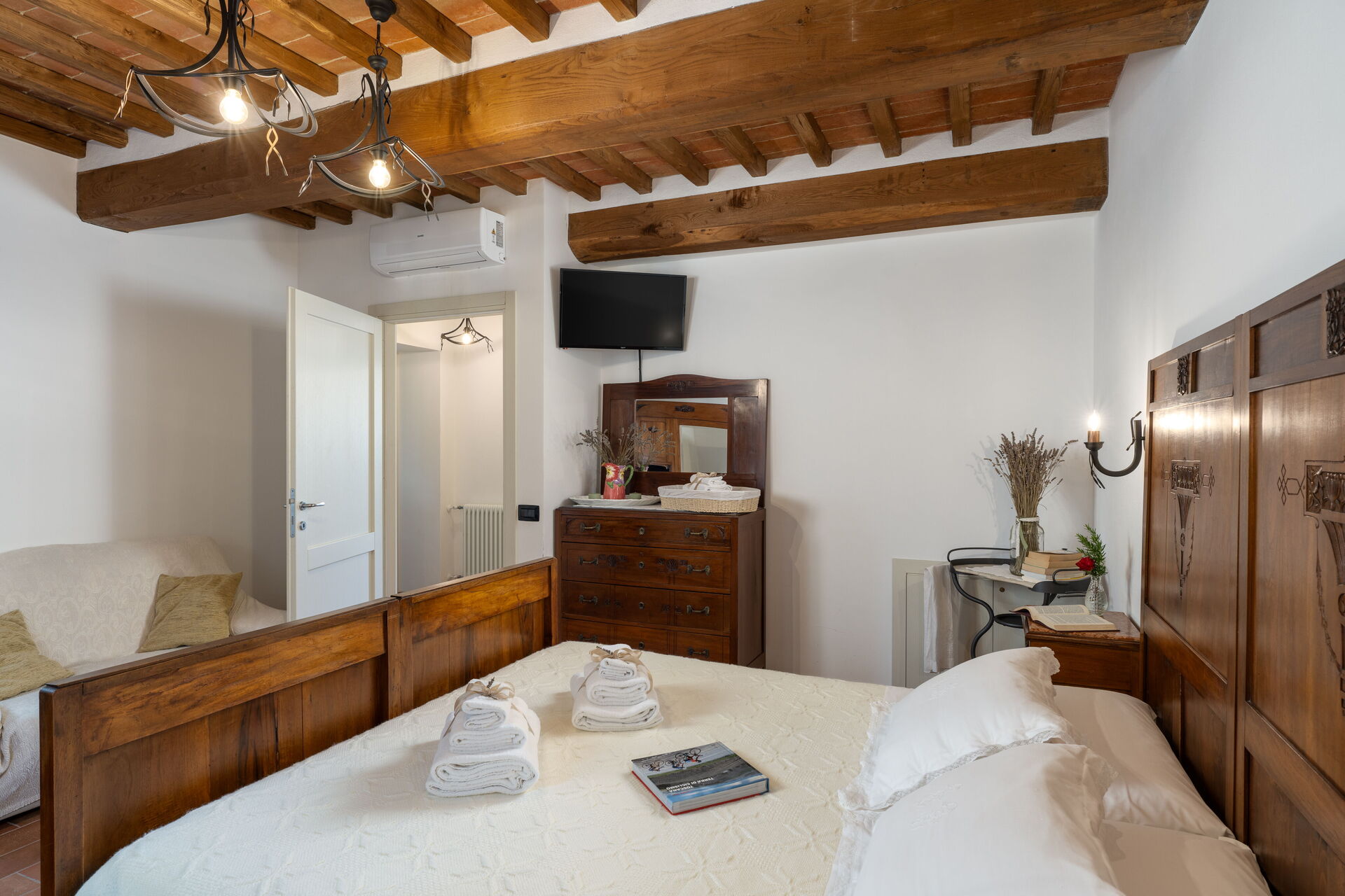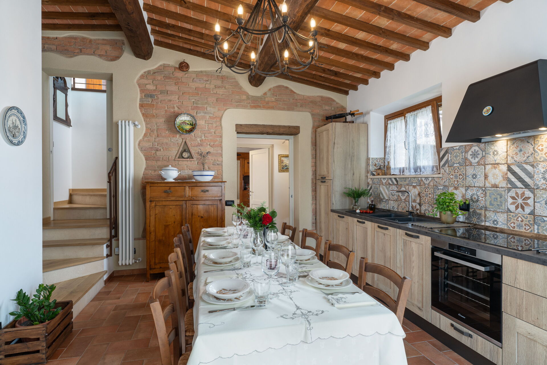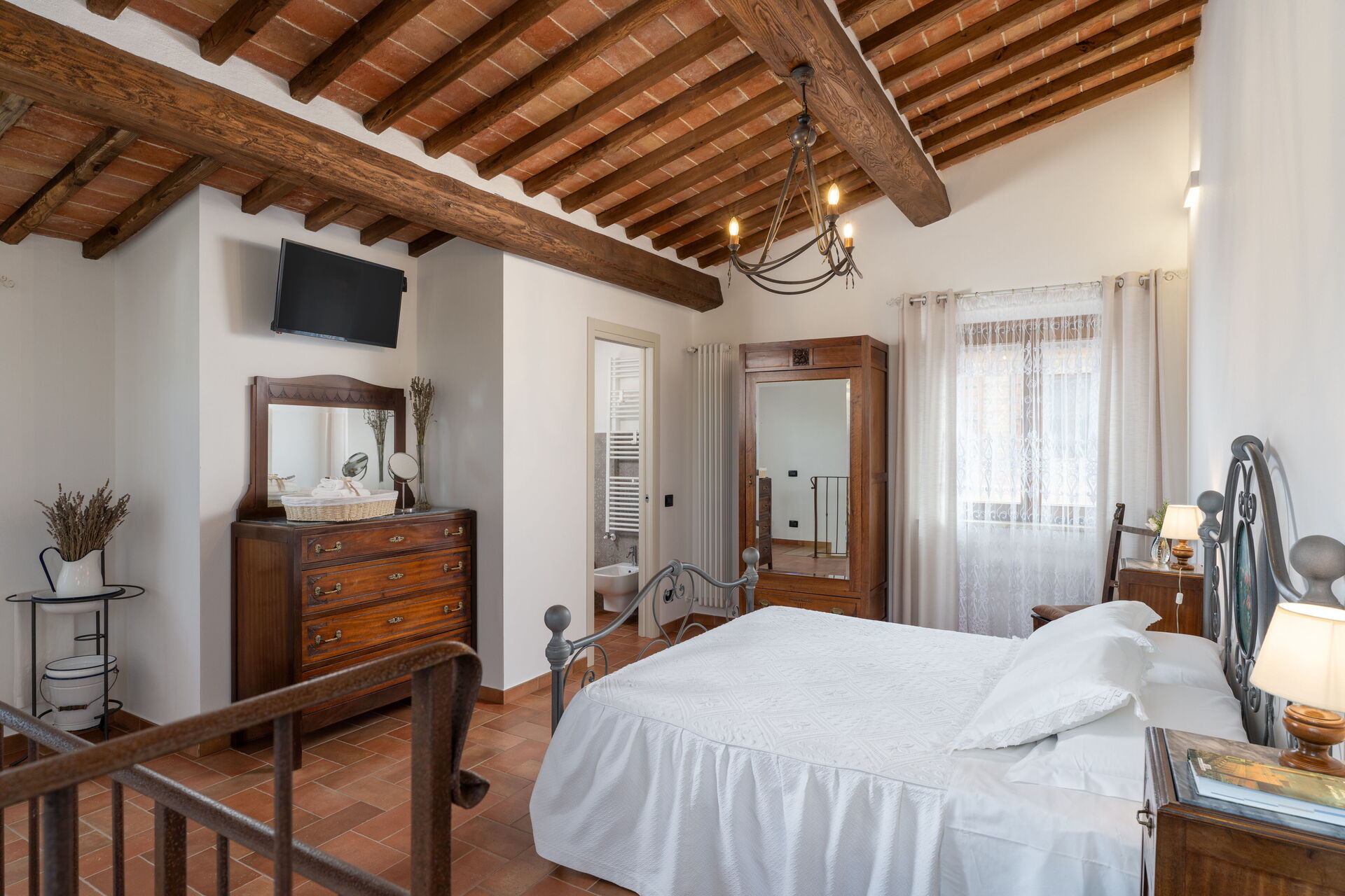 When you arrive at Capanna Di Elfo you’ll find a lovely clean well-maintained property with views of the hills ideal for a splendid vacation in Tuscany. For your enjoyment you will find a private garden where you can unwind while enjoying a nice cold beverage after a busy day of sightseeing. A real benefit of renting a home, instead of multiple hotel rooms, is the ability to relax after a busy day of sightseeing with family and friends. Enjoy a meal together along with some local wine to finish the day. Also available outdoors are a barbecue grill, hot tub and patio. Dining with friends and family is a big part of the Tuscan culture. Take advantage of the well-equipped kitchen to prepare meals using local produce while on your holiday. The kitchen includes coffee machine, toaster, stove and refrigerator, as well as, plenty of tableware and cutlery for up to eight people. Dine 'al fresco' like a real Tuscan, the fully furnished veranda is the ideal setting to enjoy food, family and the lovely Tuscan weather.