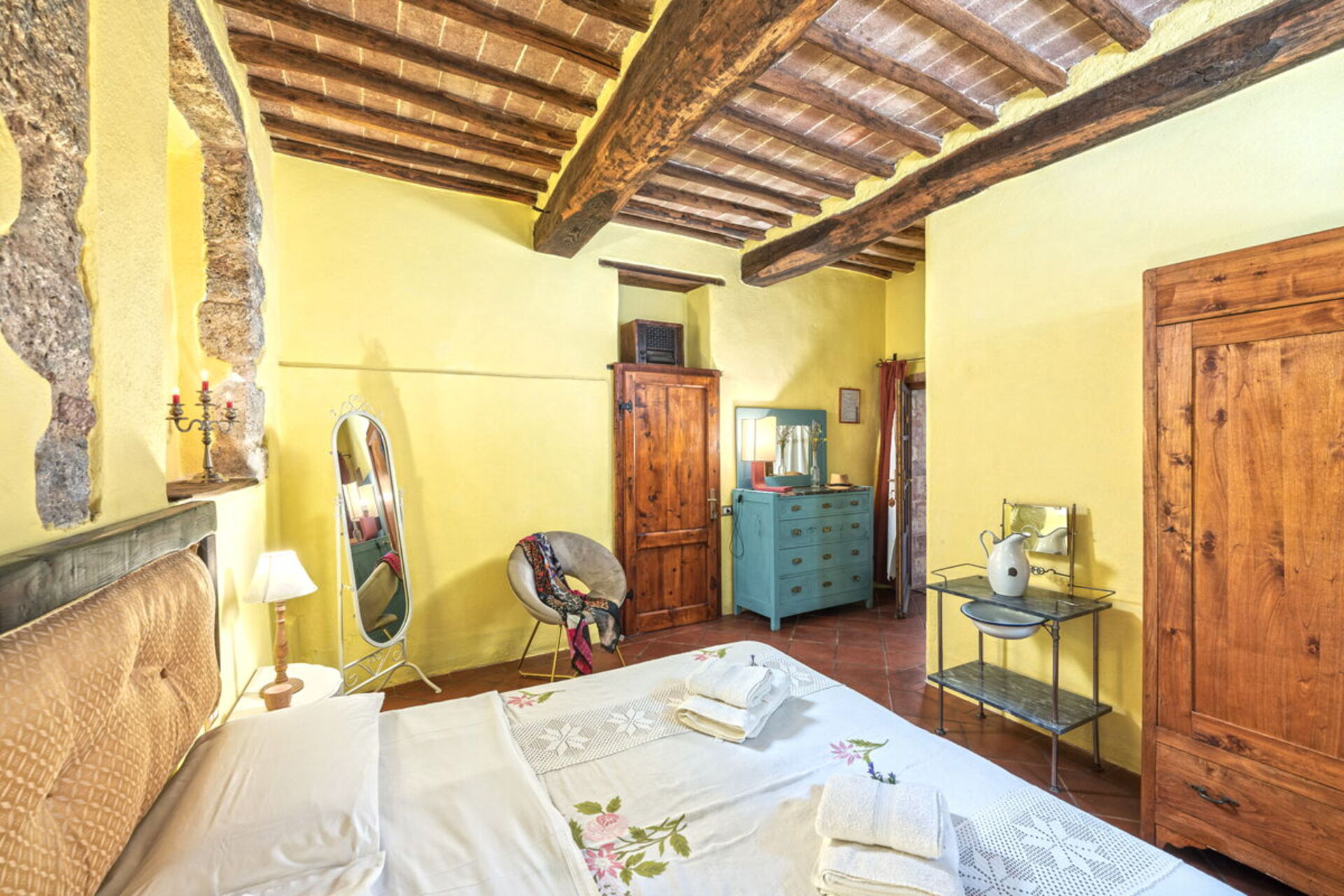 Conveniently located 14 km (9 mi) from Monteriggioni, Italy in the tourist area "Siena And Surroundings" and only 14 km (9 mi) from Siena. Podere Lorena, Charming Tuscan Farmhouse is a lovely stone building (300 sq m) with hot tub, private pool and WiFi internet. The property can accommodate up to 12 guests comfortably in six bedrooms with six bathrooms.