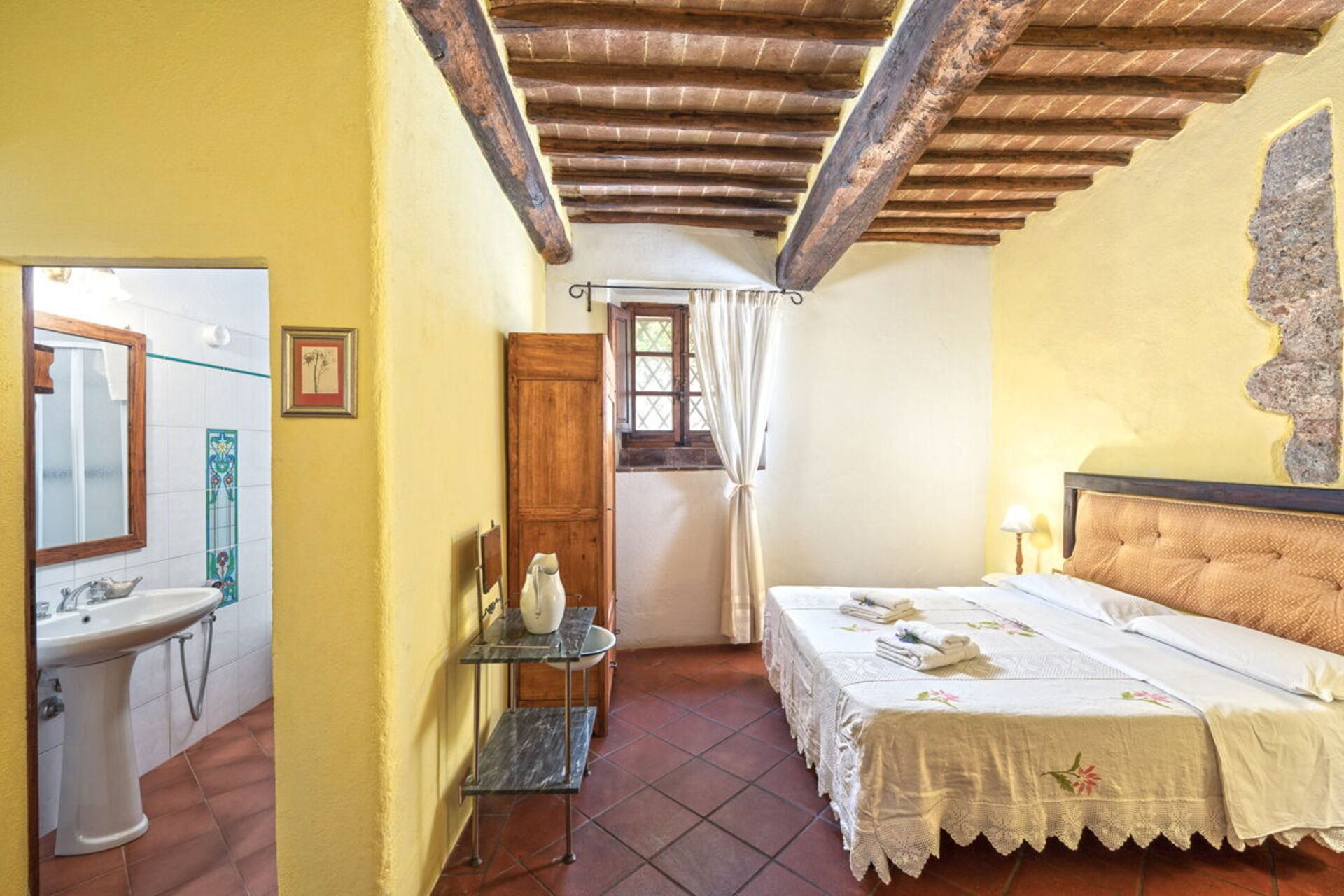 Bedroom + Ensuite Bathroom 3: double bed (length: 1.9m, width: 1.6m), WIFI internet, mosquito net, armchair, basin, bidet, shower, hairdryer.