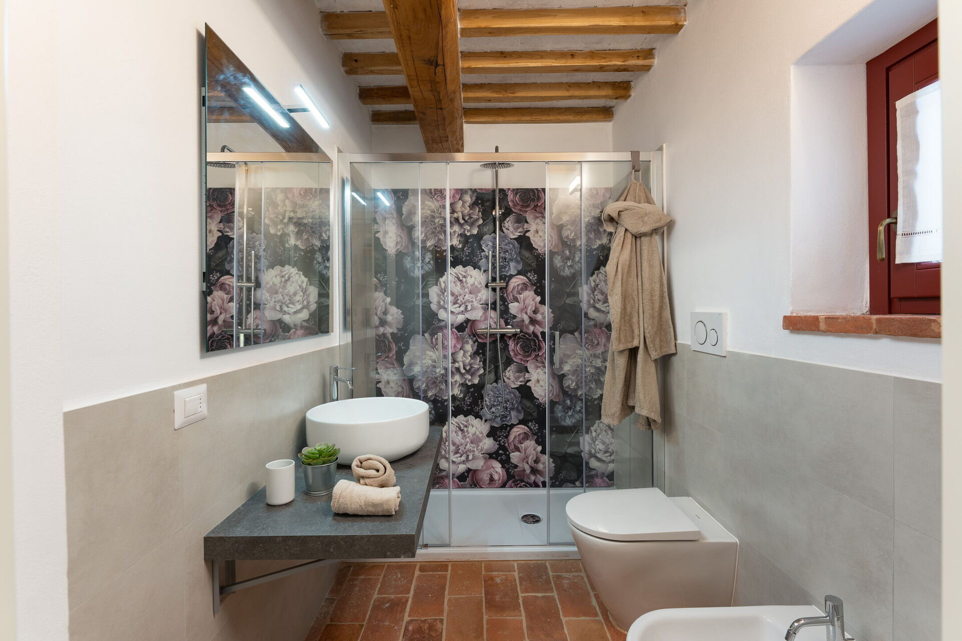 Bedroom + Ensuite Bathroom 2: double bed, WIFI internet, air conditioning, basin, toilet, bidet, shower, hairdryer.
