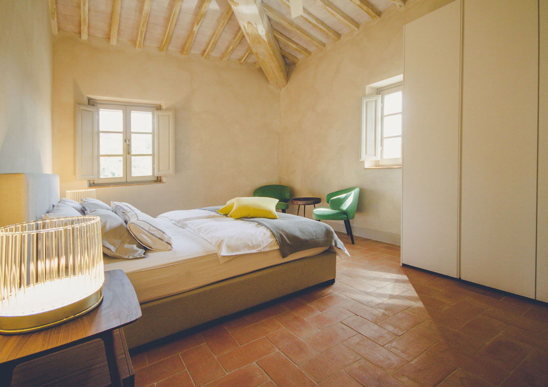 Bedroom + Ensuite Bathroom 2: king size bed, WIFI internet, air conditioning, mosquito net, satellite tv, armchair, fridge, basin, toilet, bidet, shower, iron, hairdryer, dryer, bathroom with no window, smoke detector, co2 detector, washing machine, exit to the garden.