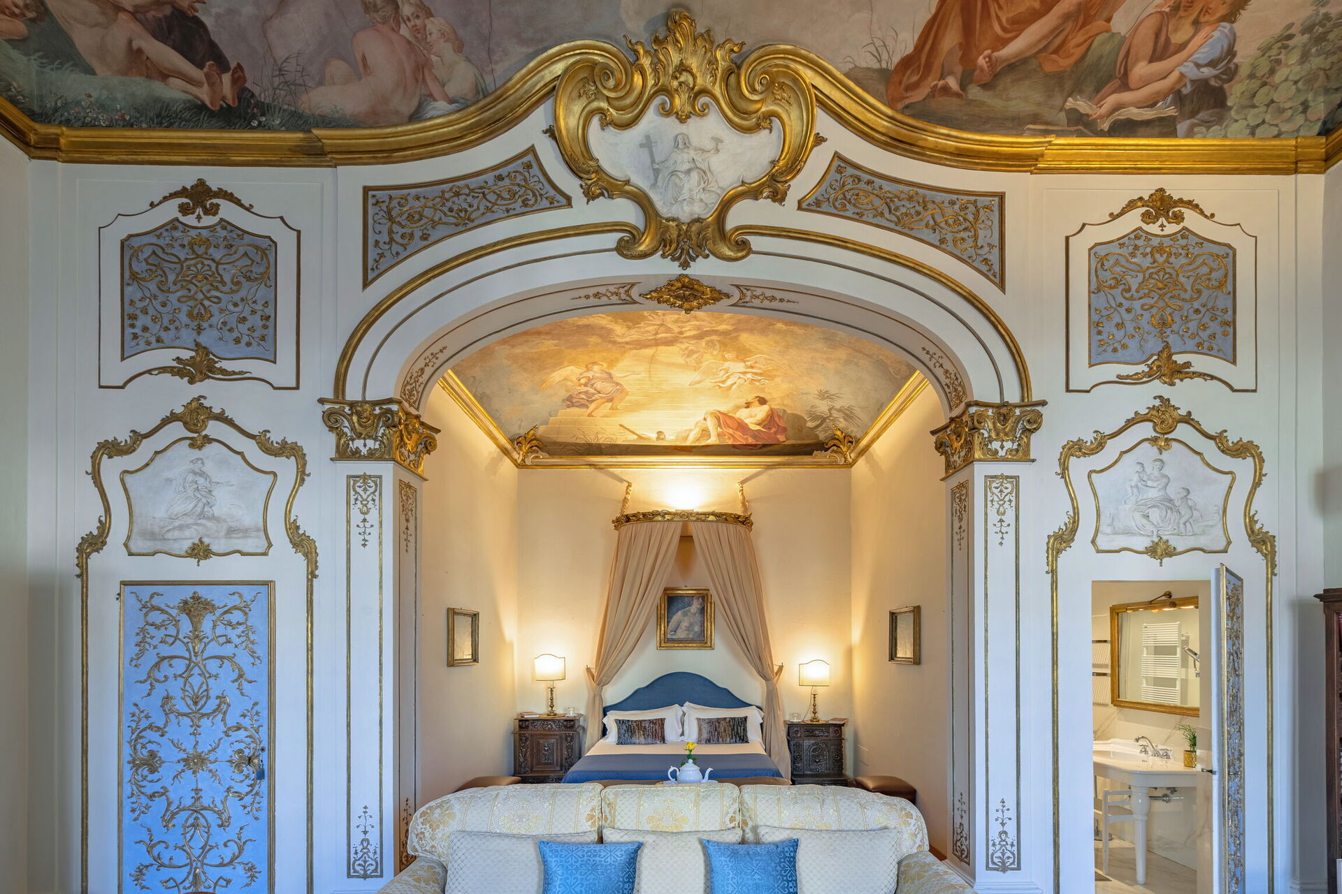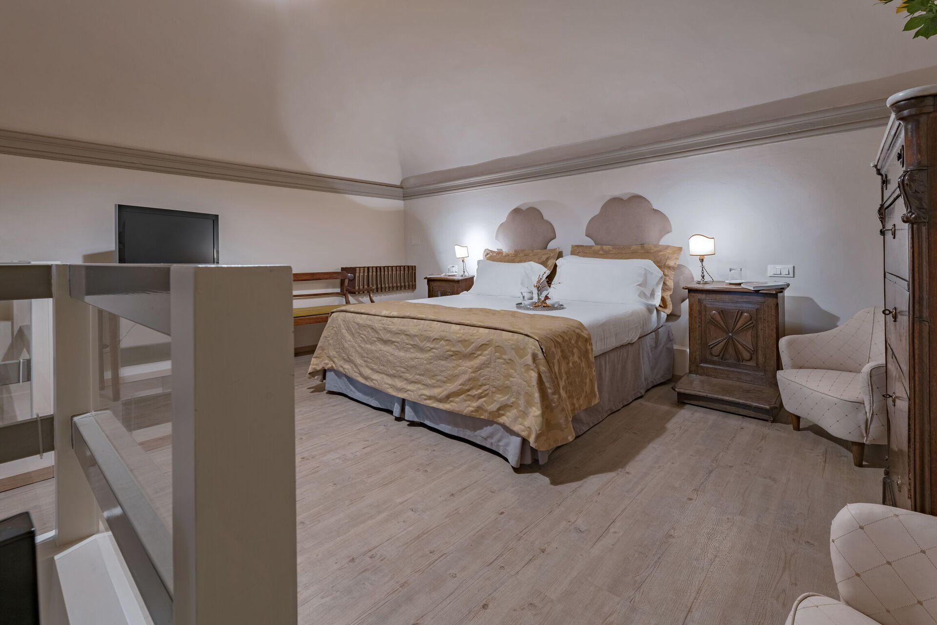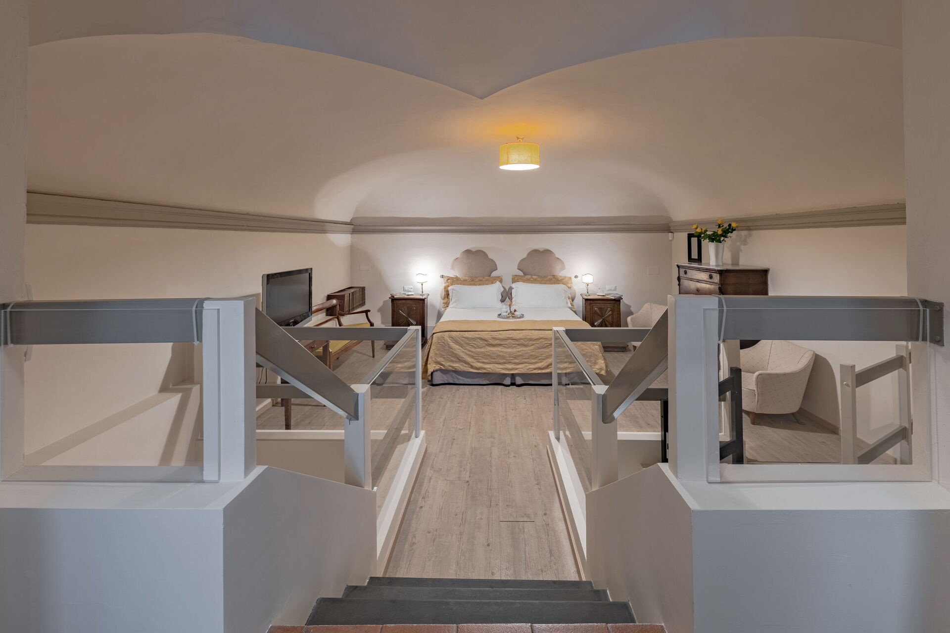 Bedroom + Ensuite Bathroom (16 m2): double bed (length: 210m, width: 160m), WIFI internet, air conditioning, armchair, working desk, basin, bidet, shower, loft.