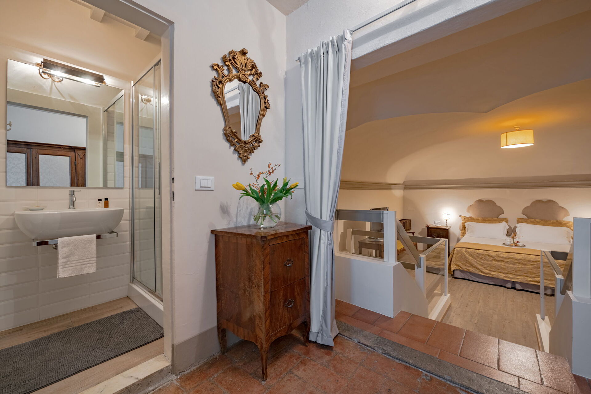Elegant Suite: Florence Apartment with View on Med is a beautiful property (300 sq m) with air conditioning and WiFi internet. The property can accommodate up to four guests comfortably in two bedrooms with three bathrooms. Elegant Suite: Florence Apartment with View on Med is located in the centre of Florence, Italy and only 32 km (20 mi) from Greve In Chianti in the tourist area "Florence And Surroundings".