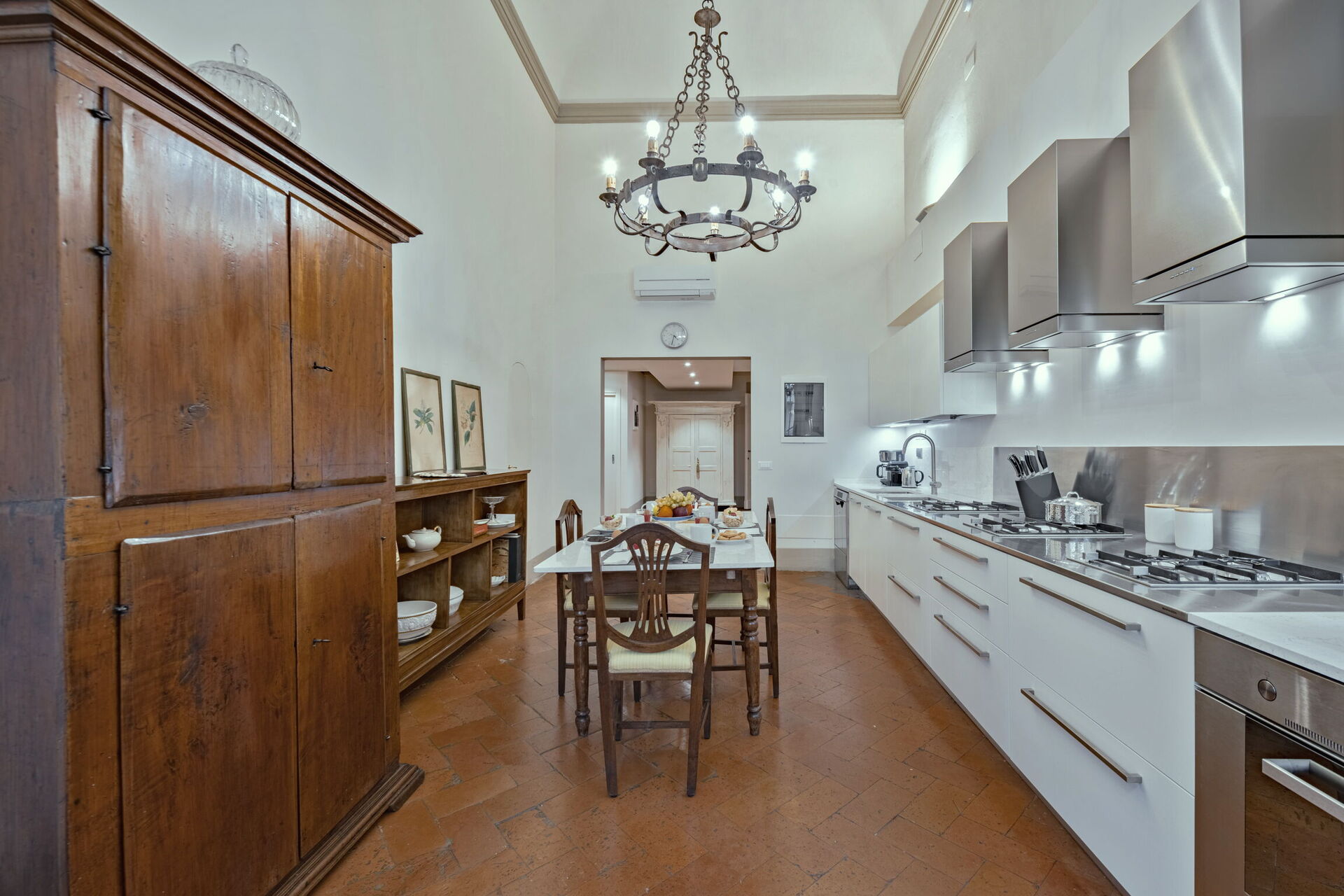 Kitchen (14 m2): well equipped kitchen, dining table (people: 4), dishwasher, fridge, microwave, stove top, oven, toaster, italian coffee machine, american coffee machine, air conditioning, smoke detector, co2 detector.