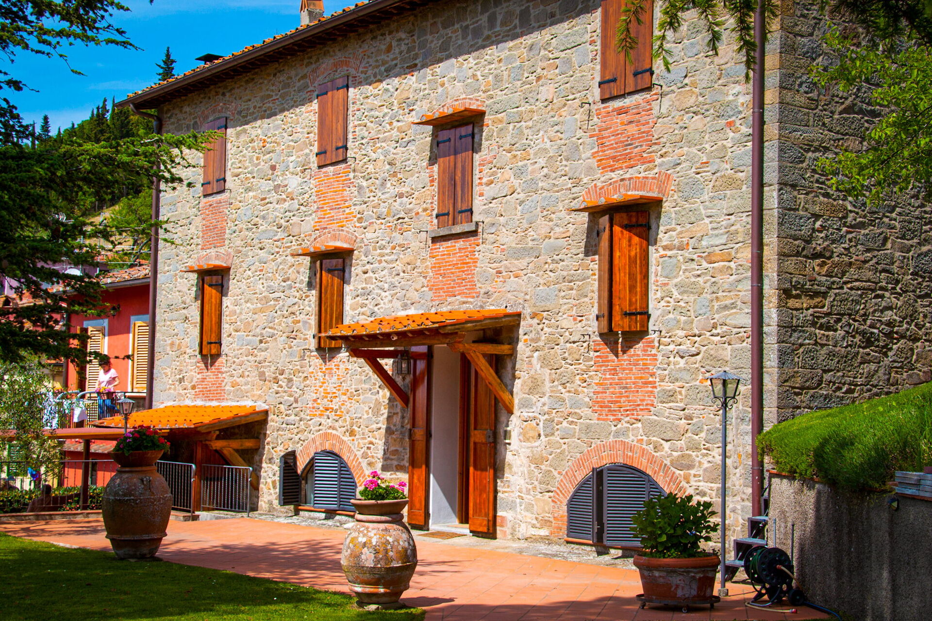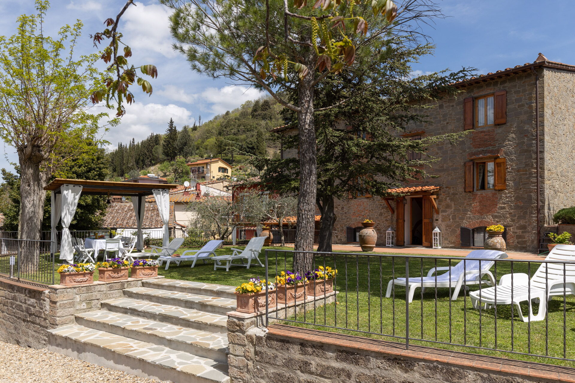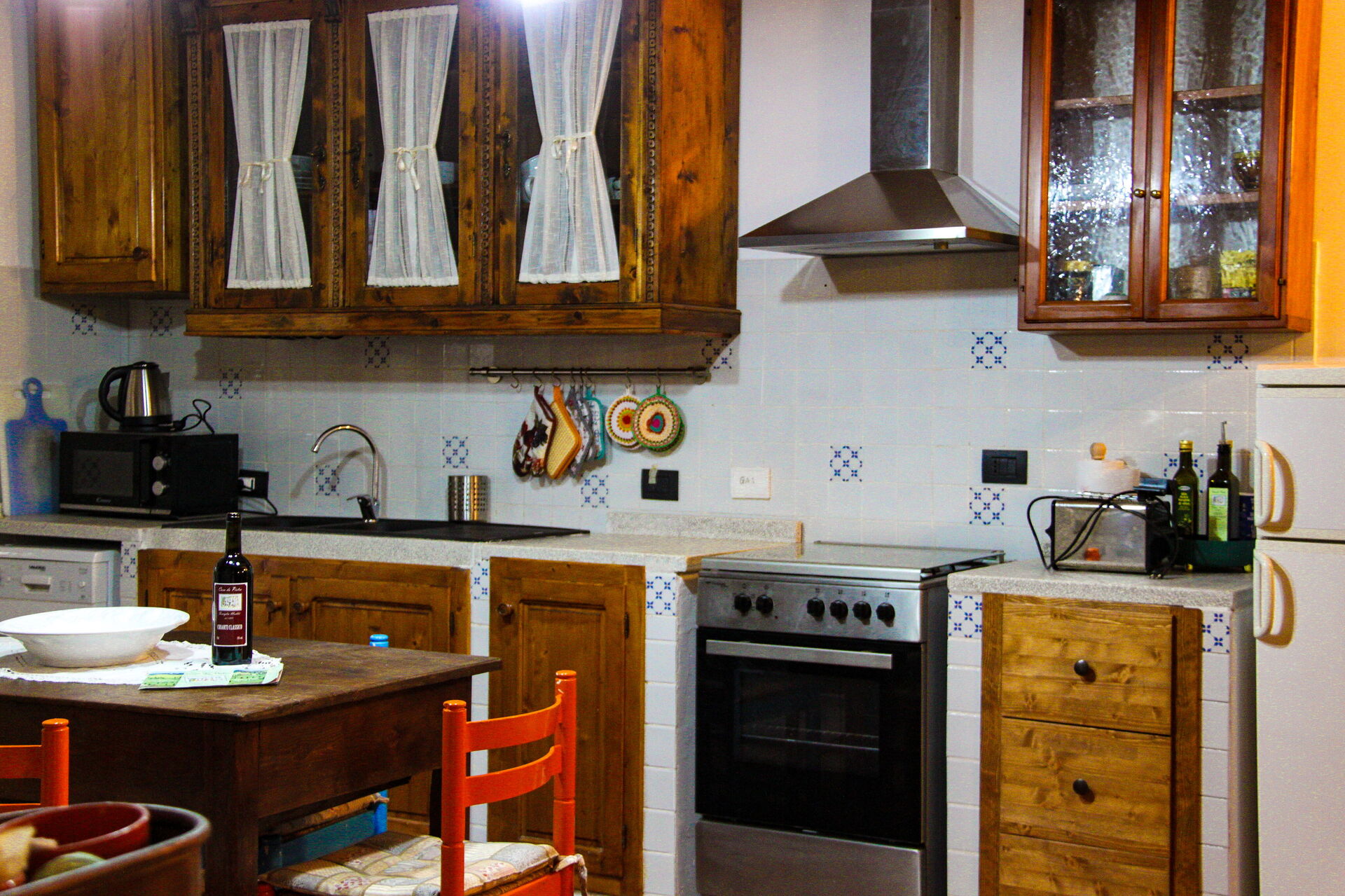 After arriving you will be welcomed by the owner or manager where you’ll find a lovely clean well-maintained property with views of the hills and the mountains ideal for a peaceful vacation in Tuscany. After a busy day of shopping, spend some time with friends and family enjoying a glass of wine - a perfect way to relax at the end the day. Outdoors you will also find a patio, playground and barbecue grill. Many people traveling with friends prefer a multi-unit holiday rental where they can spend time together in the common areas but still have their own private living quarters with bedroom and bathroom. In addition, each unit has its own kitchen with plenty of utensils, tableware and cutlery.