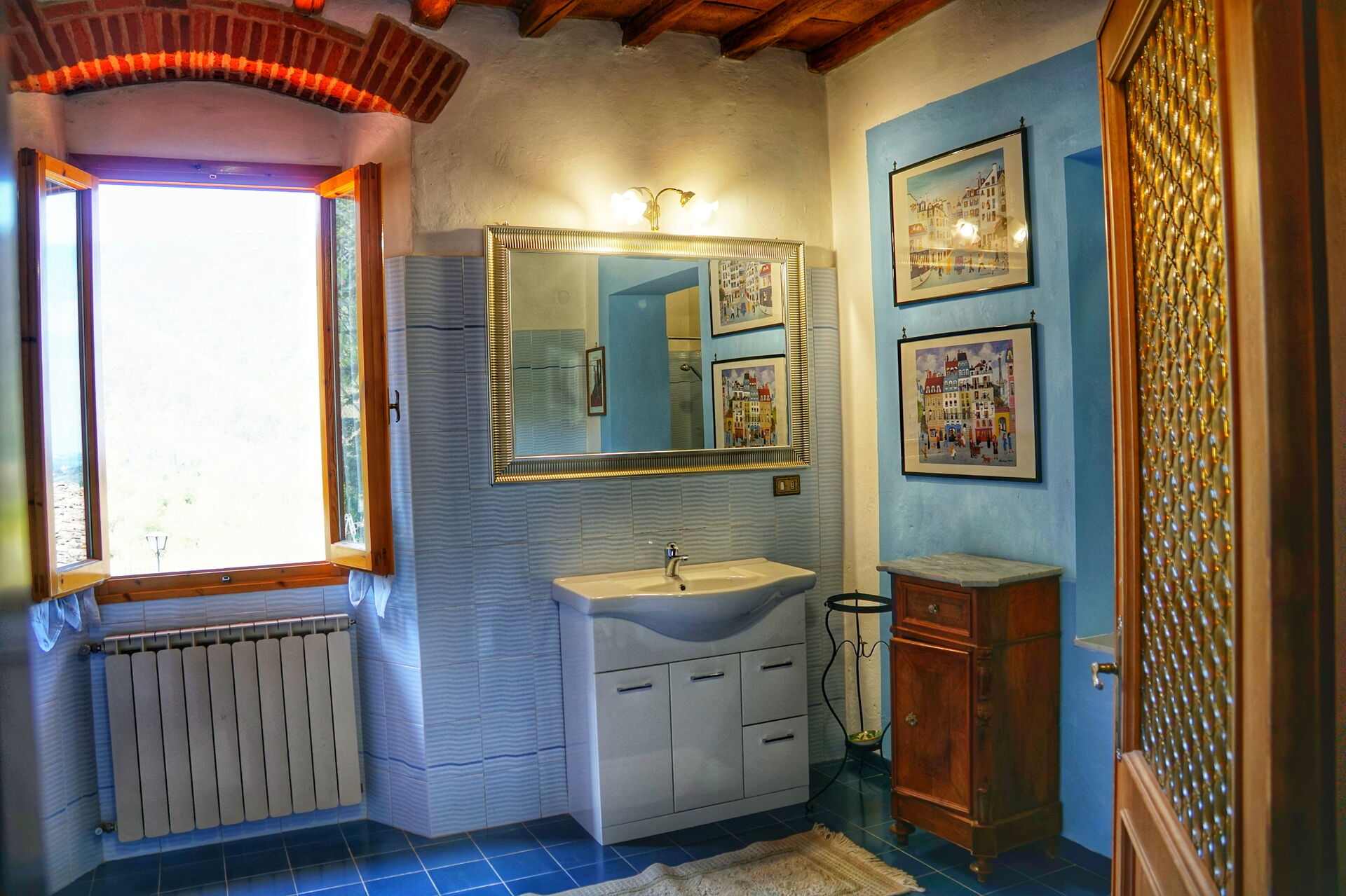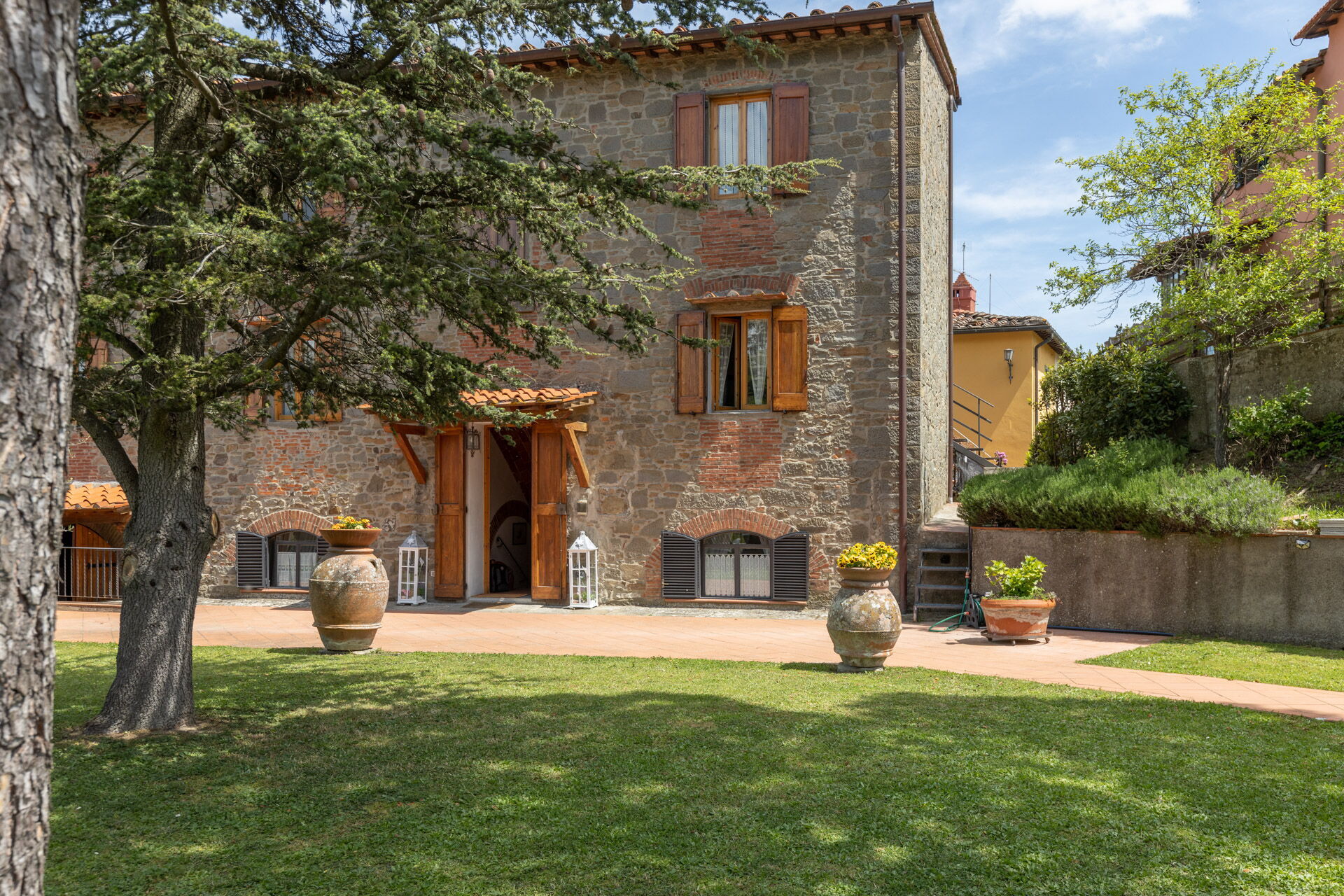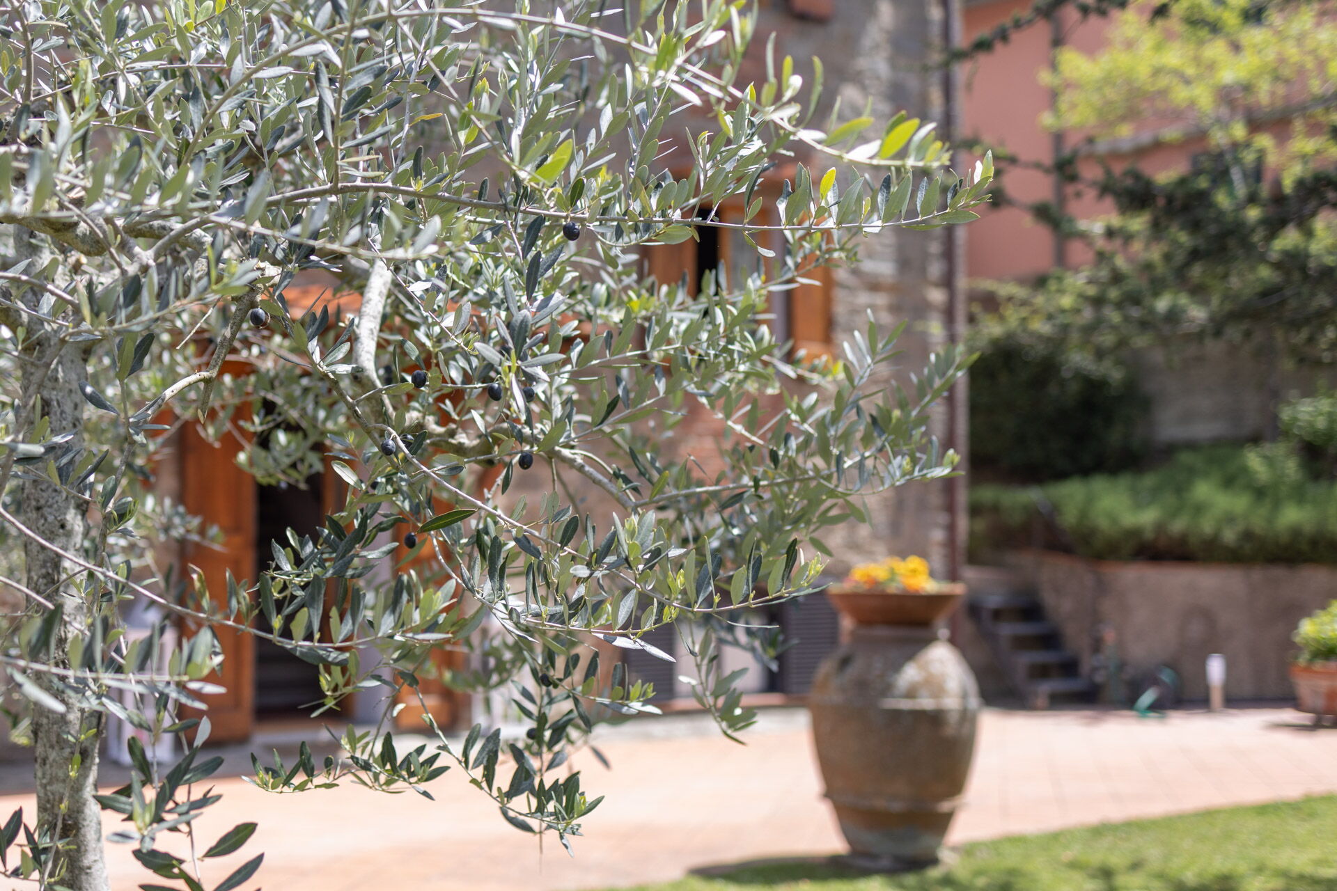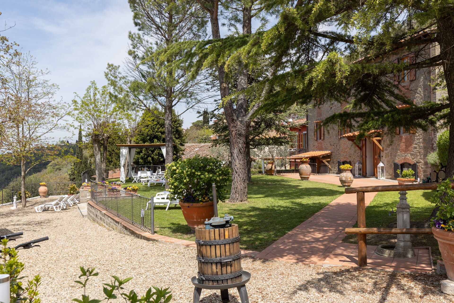 After arriving you will be welcomed by the owner or manager where you’ll find a lovely clean well-maintained property with views of the hills and the mountains ideal for a peaceful vacation in Tuscany. After a busy day of shopping, spend some time with friends and family enjoying a glass of wine - a perfect way to relax at the end the day. Outdoors you will also find a patio, playground and barbecue grill. Many people traveling with friends prefer a multi-unit holiday rental where they can spend time together in the common areas but still have their own private living quarters with bedroom and bathroom. In addition, each unit has its own kitchen with plenty of utensils, tableware and cutlery.