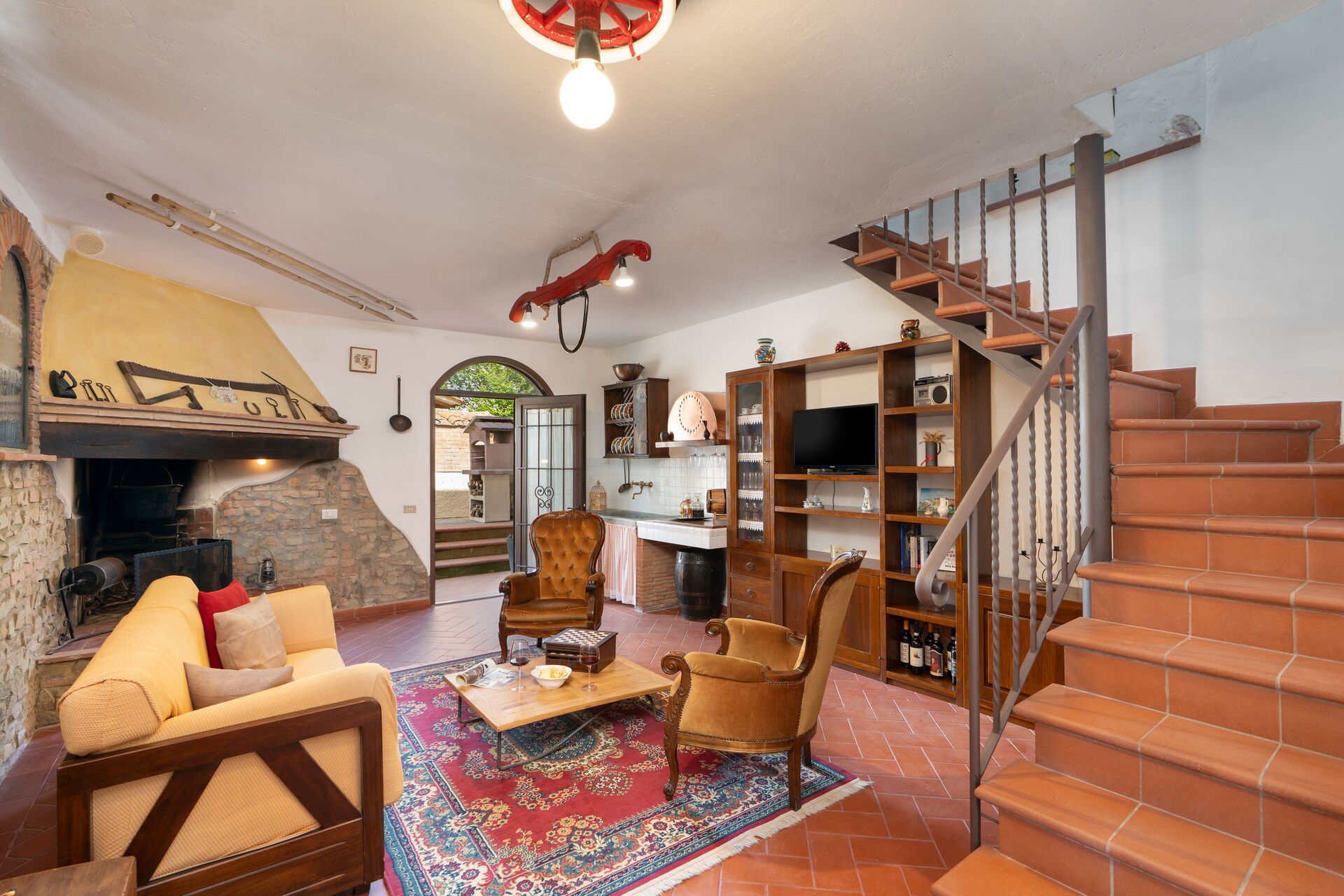 Living room: sofa (people: 2), two armchairs, fireplace, WIFI internet, air conditioning, satellite tv, mosquito net, exit to the garden.