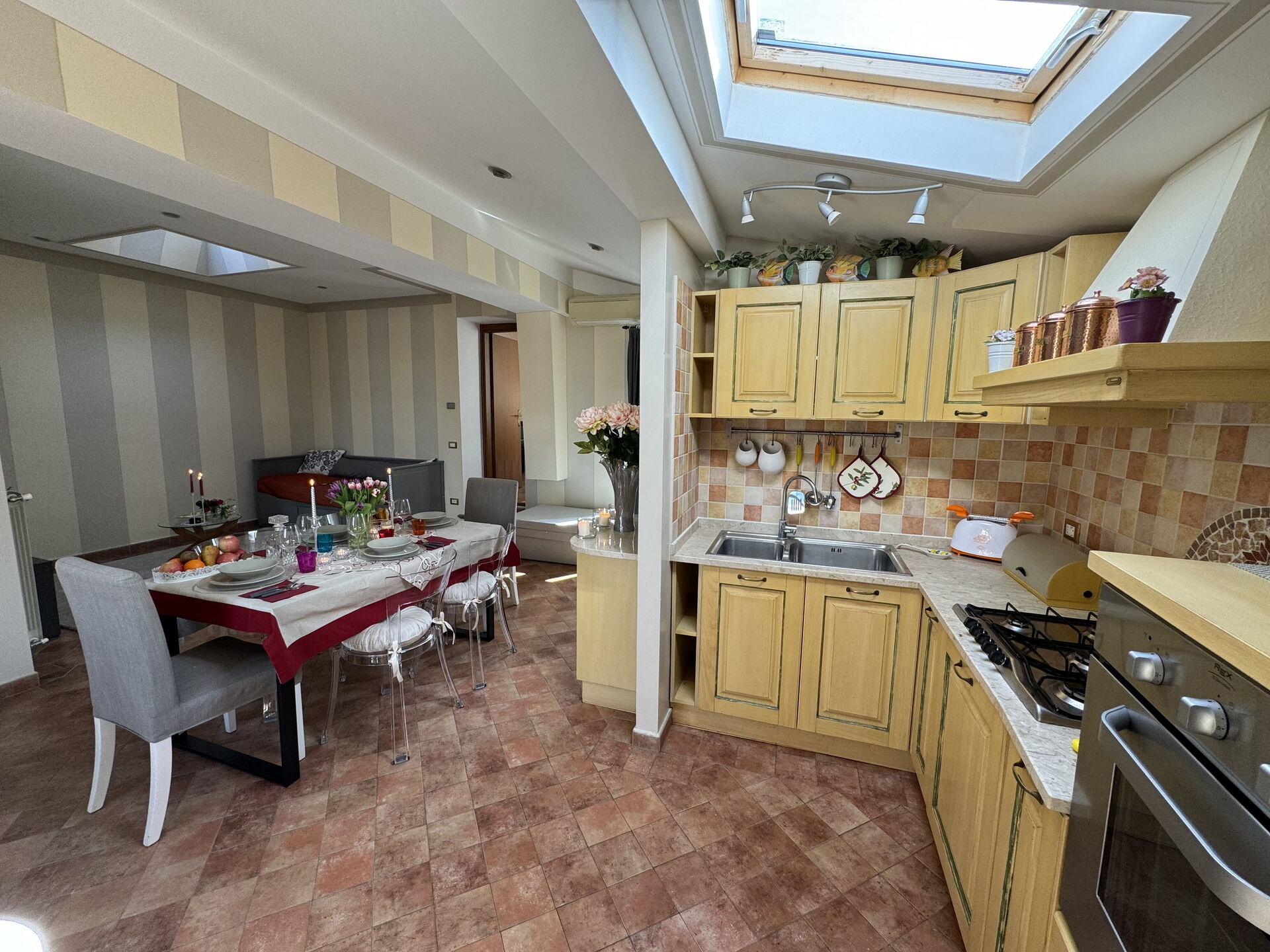 Kitchen: well equipped kitchen, dining table (people: 6), dishwasher, fridge, freezer, stove top, oven, toaster, iron, italian coffee machine, american coffee machine, WIFI internet, air conditioning, mosquito net, television.