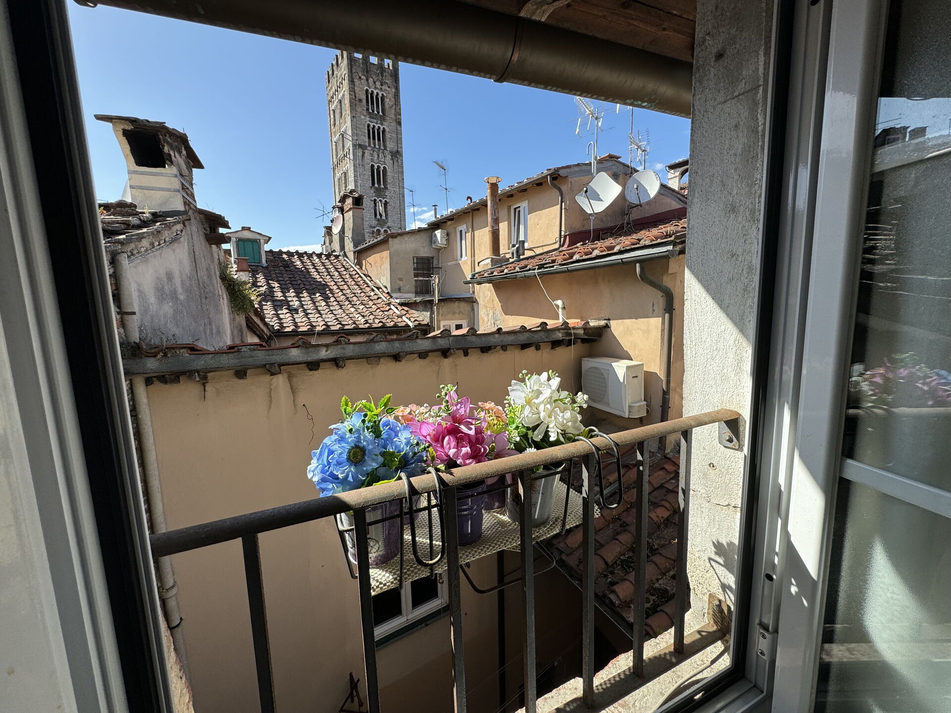Each room has a beautiful view over the city’s roofs, towers (like Torre Guinigi) and the façade of the church of San Frediano.