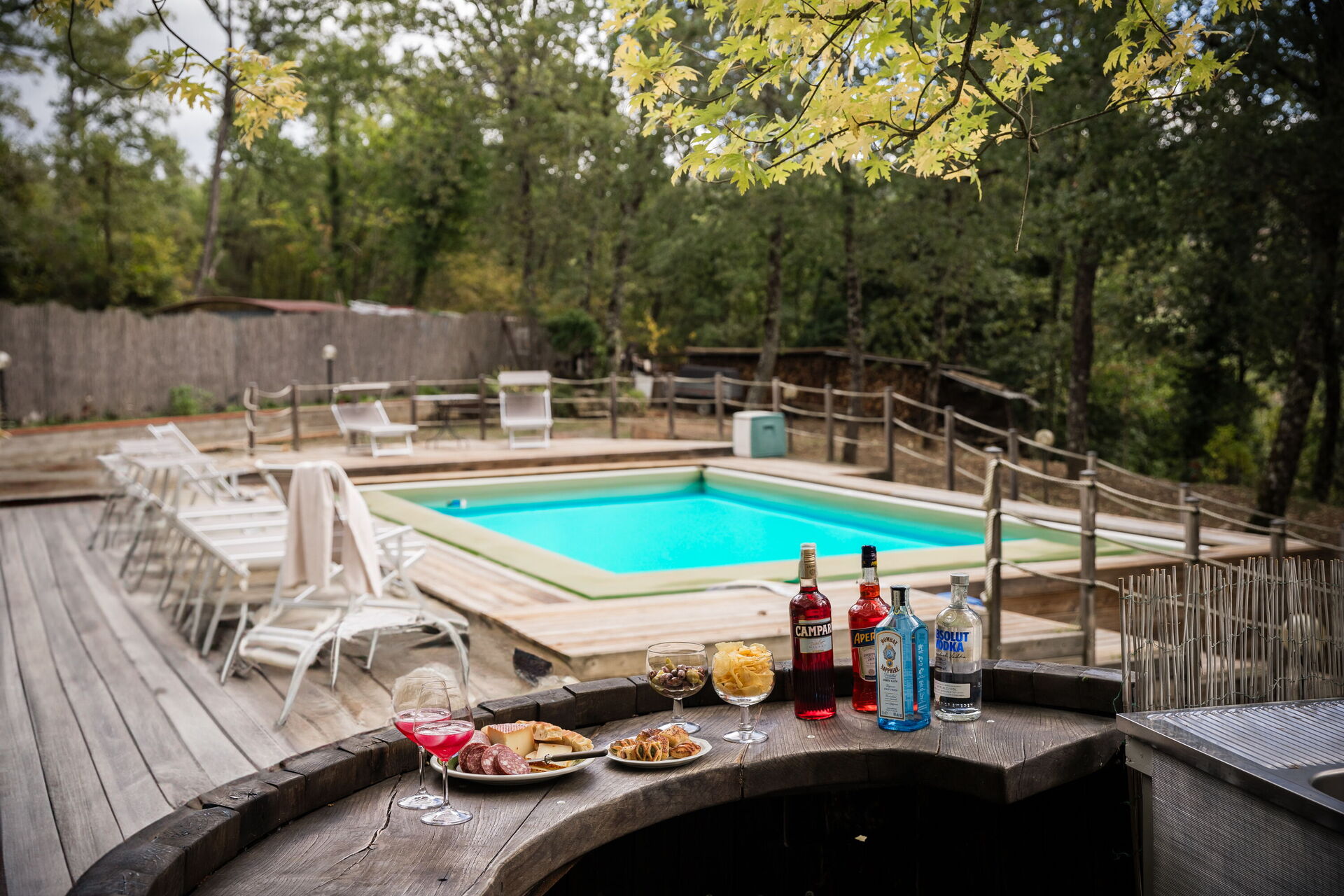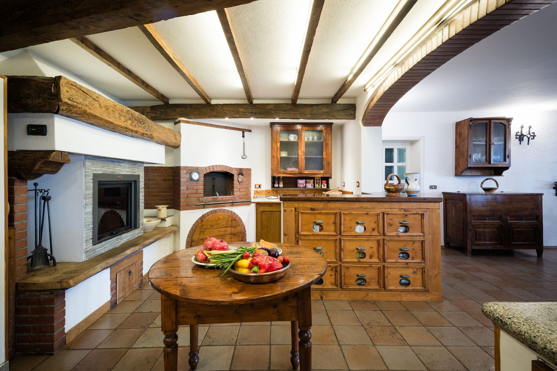 Outside, a large panoramic pool awaits, complete with a changing room, outdoor shower, and poolside bar—ideal for relaxing days in the sun and unforgettable Tuscan sunsets.