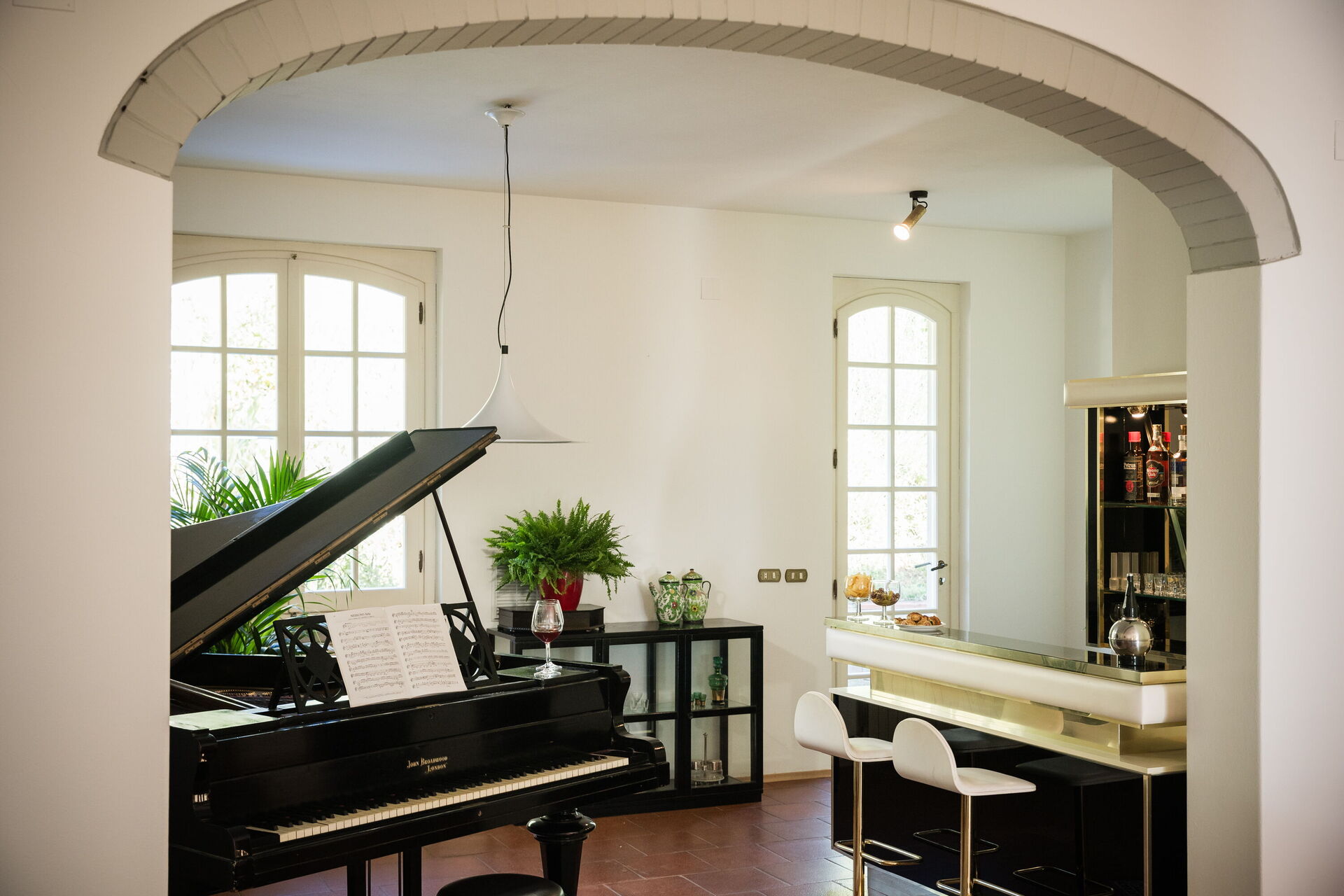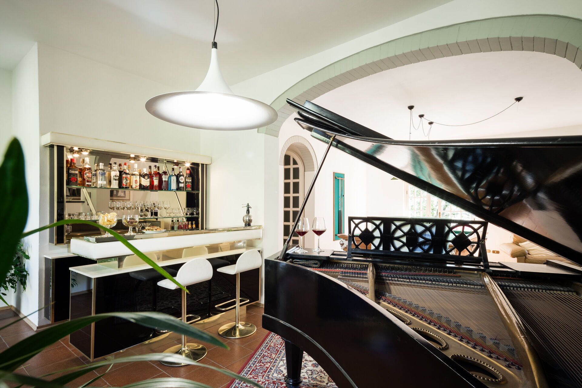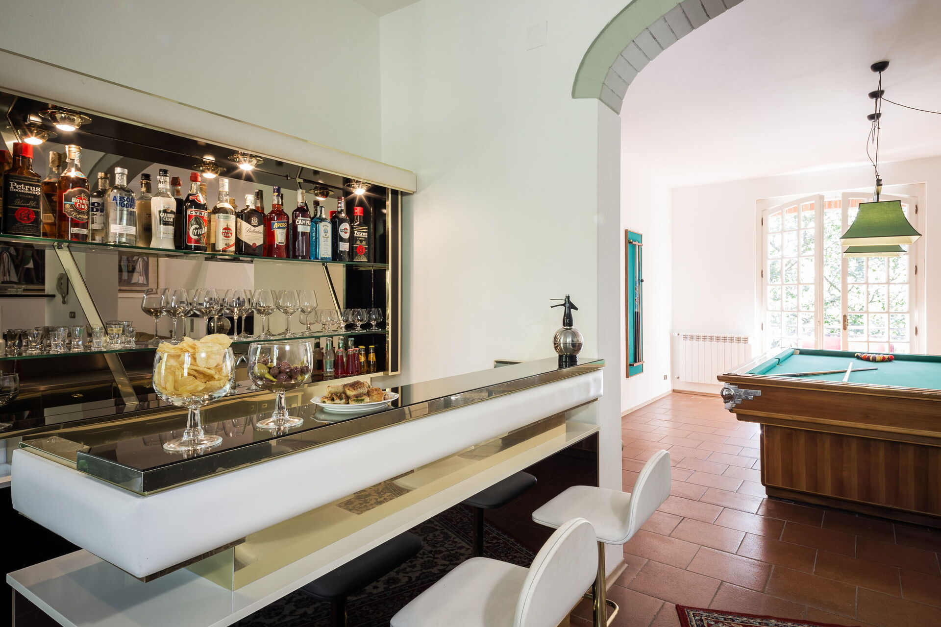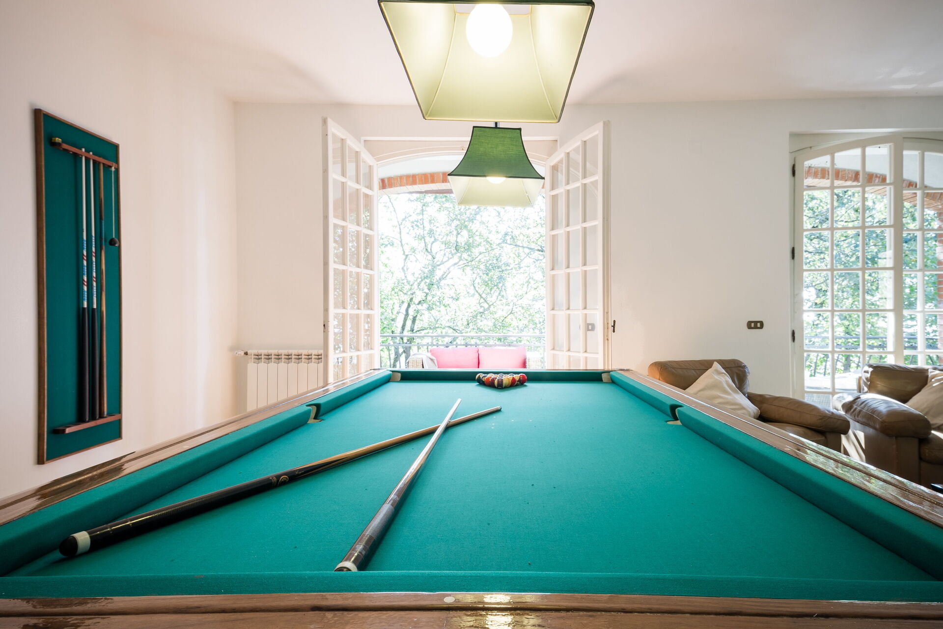 Large sitting room with TV (streaming tv), pool table, piano and piano bar - access to the pool area with changing room, outdoor shower and piano bar.