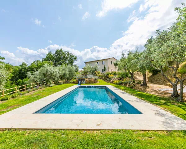 The modern and beautiful two-story Villa Montisi, built in 2020, is surrounded by trees and fields in Montisi, 15 km from Montalcino. It offers a private garden with flowers, trees, and a seasonal swimming pool (4 x 12 m, depth 120 - 150 cm, available from May 1 to September 30) with an internal staircase. Additionally, it features amenities such as air conditioning, a washing machine, a tumble dryer, and parking on the premises. The villa is an ideal vacation rental for those seeking a peaceful retreat in the Tuscan countryside.