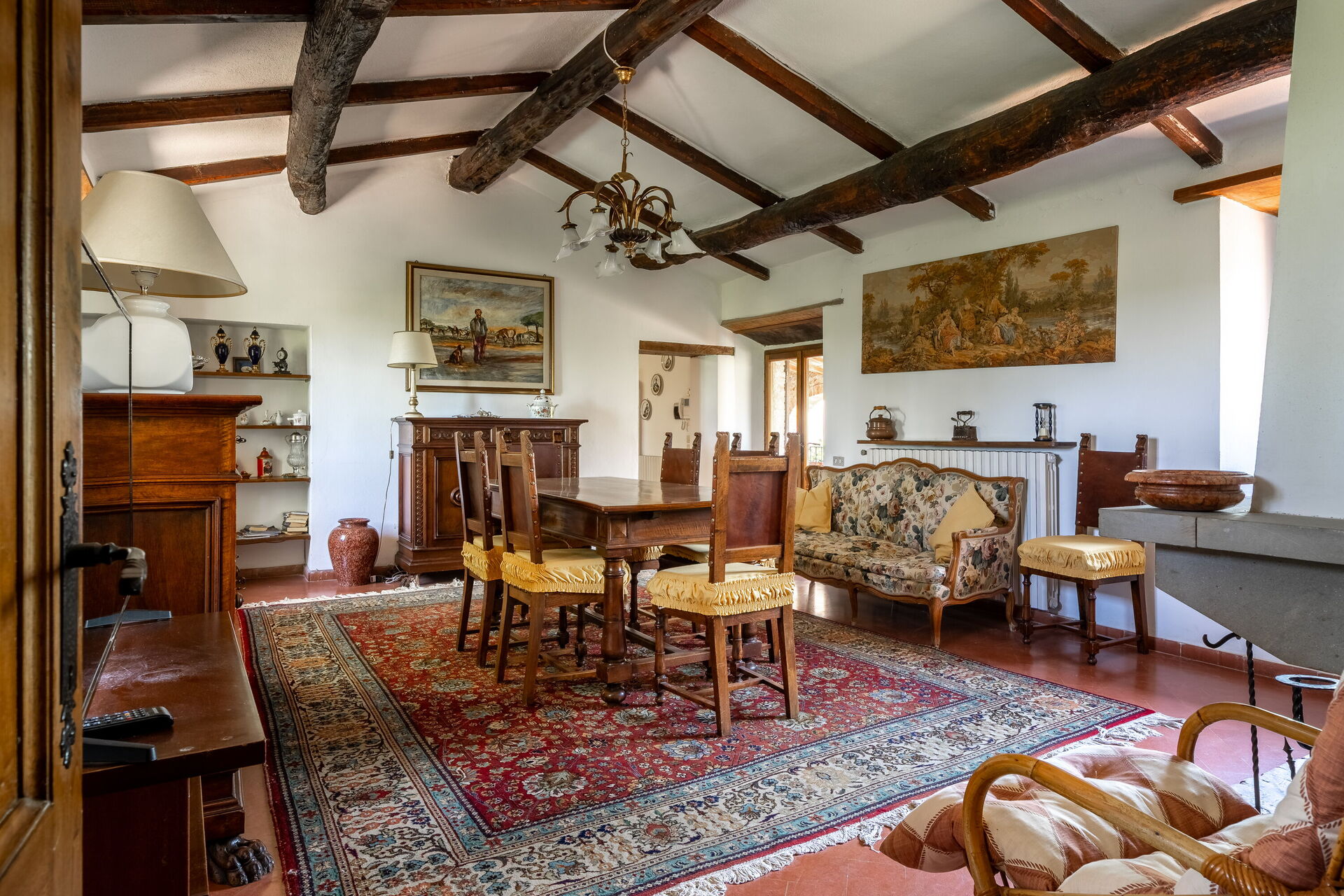 Dining room: dining table, armchair, WIFI internet, mosquito net, television, exit to the veranda.