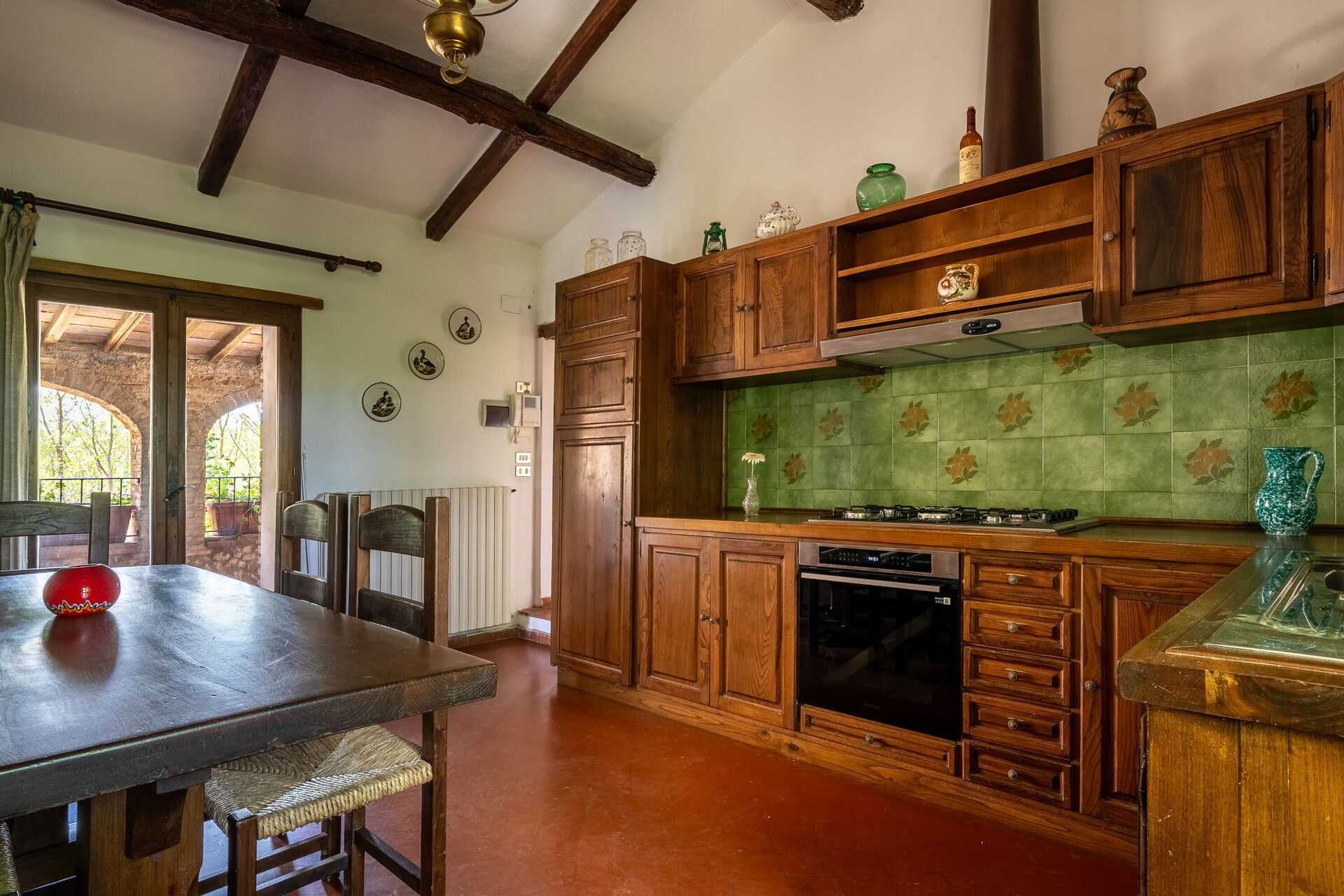 After arriving at Casa La Cedrina, Pool, Lornano you’ll find a nice clean well-maintained property with views of the hills perfect for a peaceful holiday in Tuscany. After a hectic day of visiting museums, spend some time with friends and family poolside enjoying a glass of wine - a perfect way to relax at the end the day. Sharing a meal with friends and family is a huge part of the Tuscan culture. Take advantage of the well-equipped kitchen to prepare meals using local produce while on your vacation. The kitchen includes coffee machine, microwave, toaster, stove and refrigerator, as well as, plenty of tableware and cutlery for up to eight people.