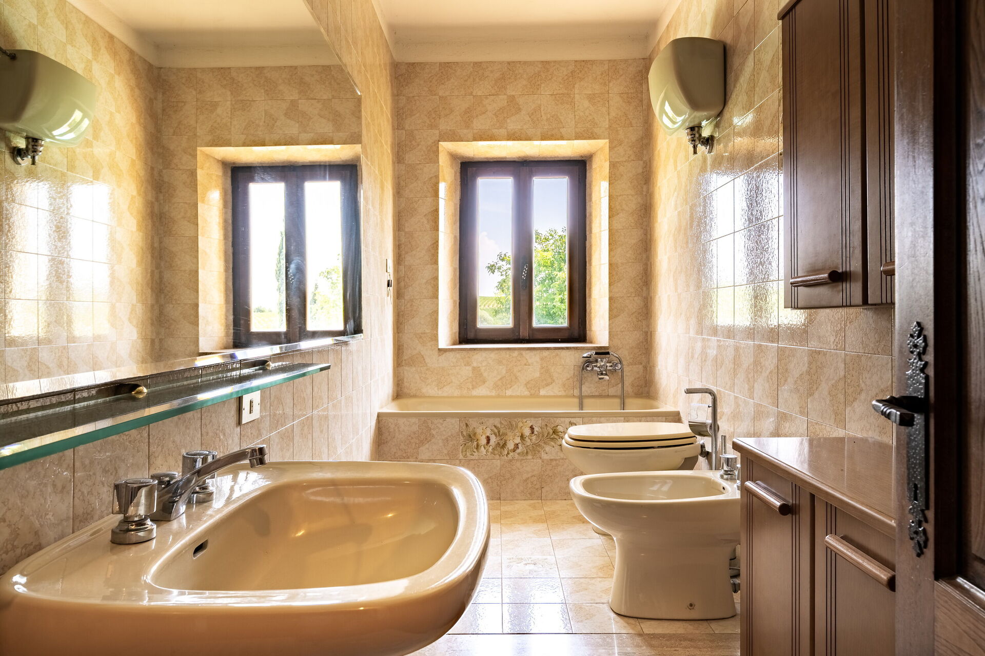 Bathroom: basin, toilet, bidet, bathtub, WIFI internet.