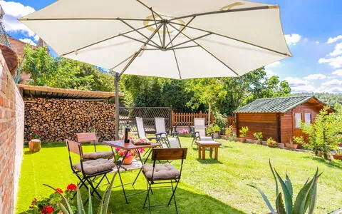 The apartment has a shower/bidet/WC combination. It is equipped with heating and air-conditioning systems. The floors are made of natural stone. Outside, there is a terrace and a patio area with terrace furniture, a barbecue, and 3 deck chairs. The property offers side panoramic views of the countryside. Additional amenities include a washing machine, iron, mosquito net, children's high chair, baby cot for up to 2-year-olds, and a hair dryer. Internet (WiFi) is provided free of charge, and there is roofed parking available at the house.