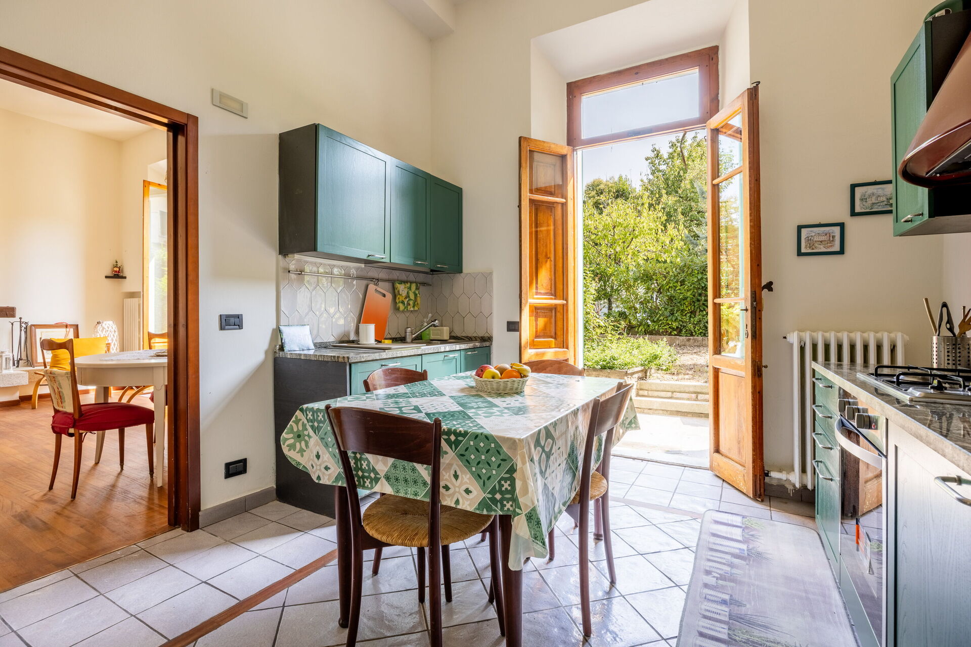 Kitchen + living room: well equipped kitchen, dining table, fridge, freezer, microwave, stove top, oven, italian coffee machine, sofa, WIFI internet, television, exit to the garden.