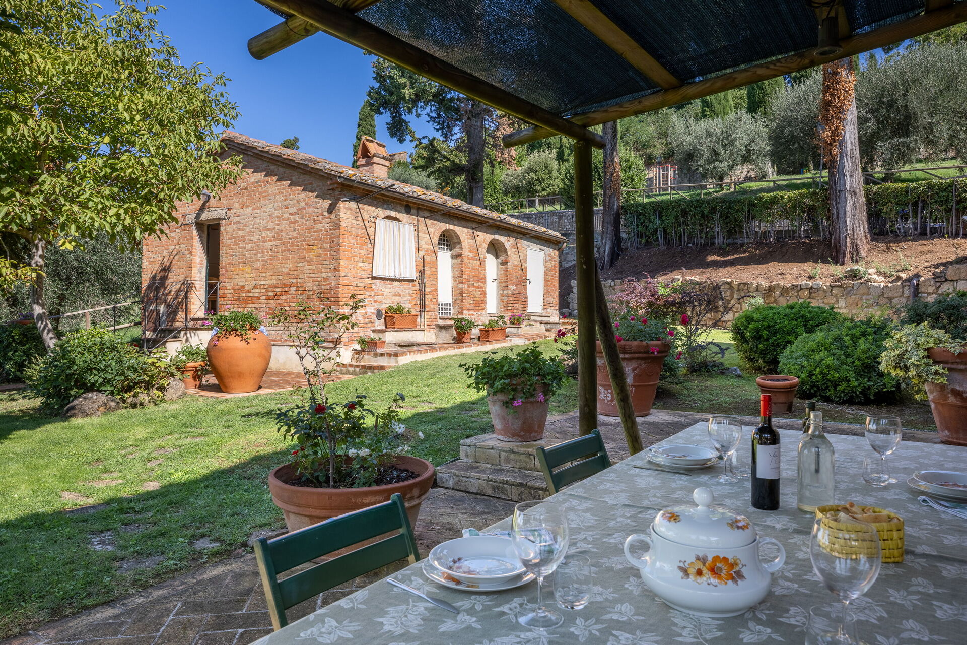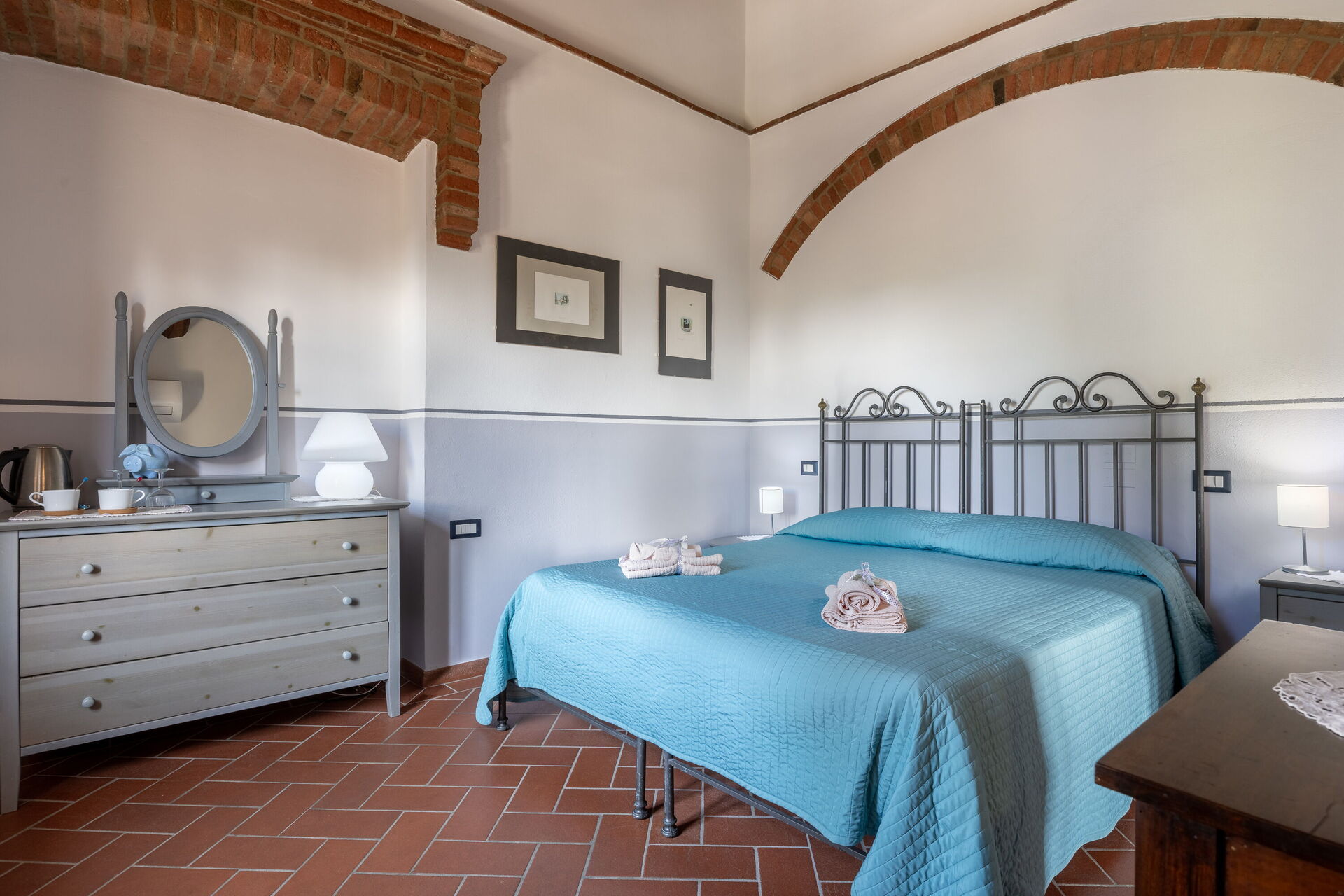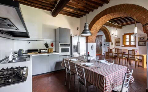When you arrive you will be greeted by the owner or manager where you’ll find a nice clean well-maintained property with views of the hills perfect for a relaxing vacation in Tuscany. For your pleasure you will find a private garden where you can relax while enjoying a nice cold beverage after a busy day of visiting museums. A real benefit of renting a home, instead of multiple hotel rooms, is the ability to relax after a busy day of sightseeing with family and friends. Enjoy a meal together along with some local wine to finish the day. If you enjoy cooking for family and friends there is a well-equipped kitchen including coffee machine, microwave, toaster, stove and refrigerator, as well as, plenty of tableware and cutlery for up to eight people.
