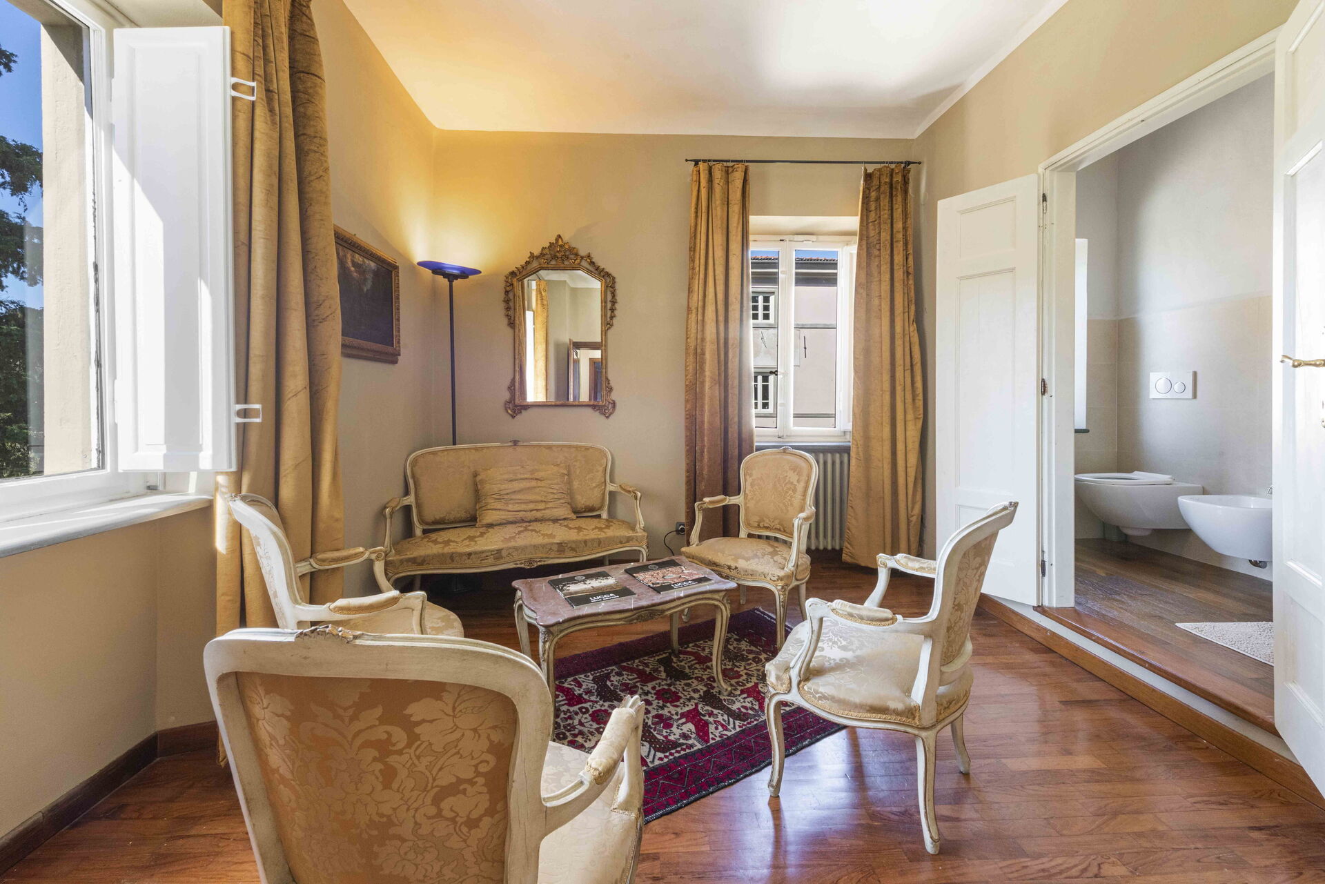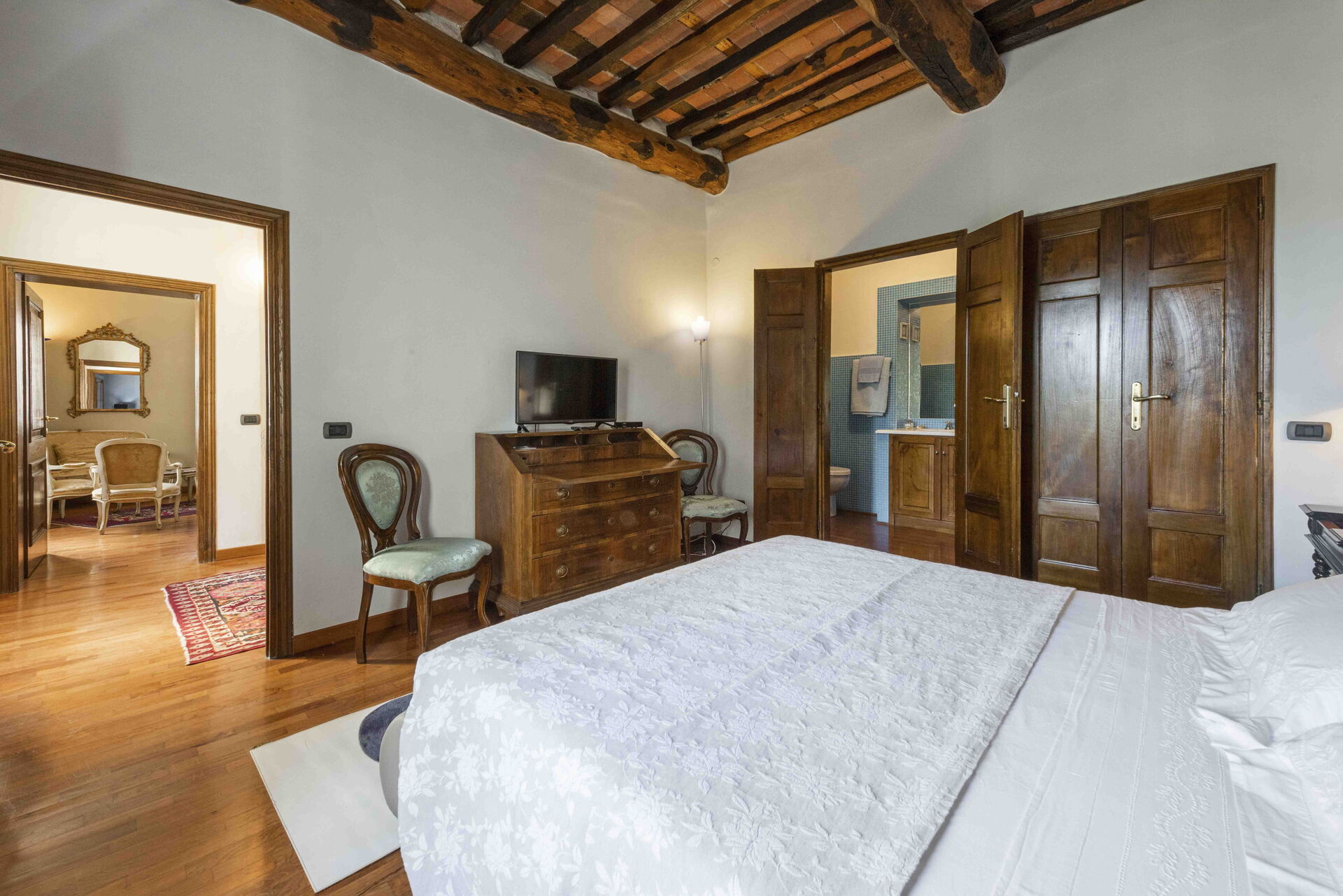 Bedroom + Ensuite Bathroom: double bed, WIFI internet, air conditioning, television, two sofas, basin, toilet, bidet, shower.